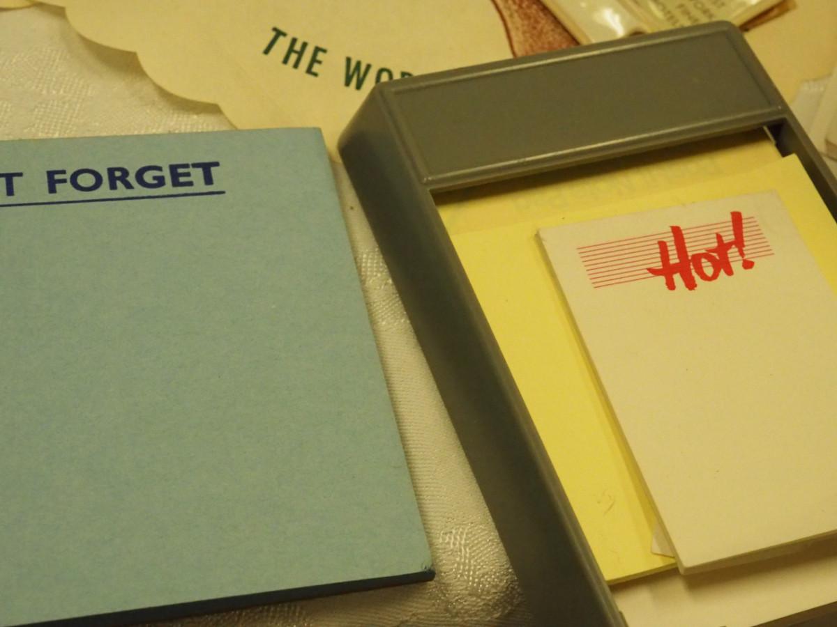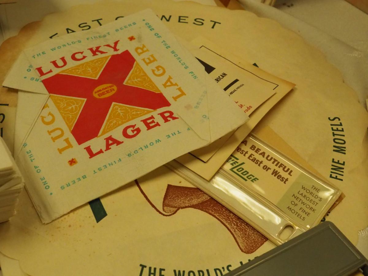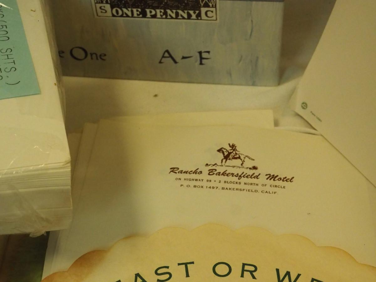 Lot 140- stamps, encyclopedia books, vintage memo pads, Travel ephemera. Hotel fliers, 1950s 60s hotel memorabilia,