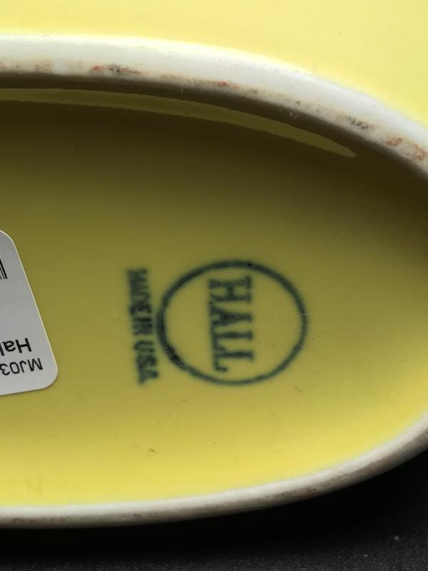 Lovely vintage yellow water pitcher by Hall. Nice refrigerator size side tip pitcher. In great shape. 9" x 3" x 8" H