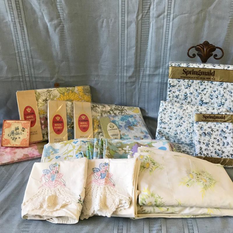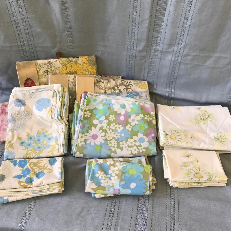 Some great Vintage Linen Sheet sets and a cute embroidered handkerchief with the word “mother”. Sheet sets are Twin or Doubles. Some new in plastic. Shipping or local pick up.
