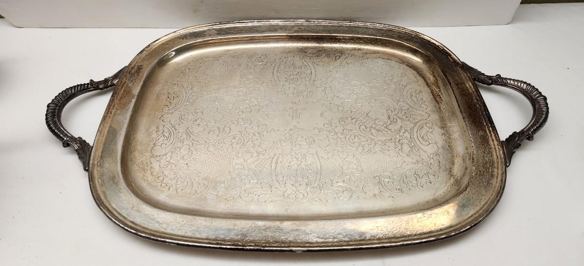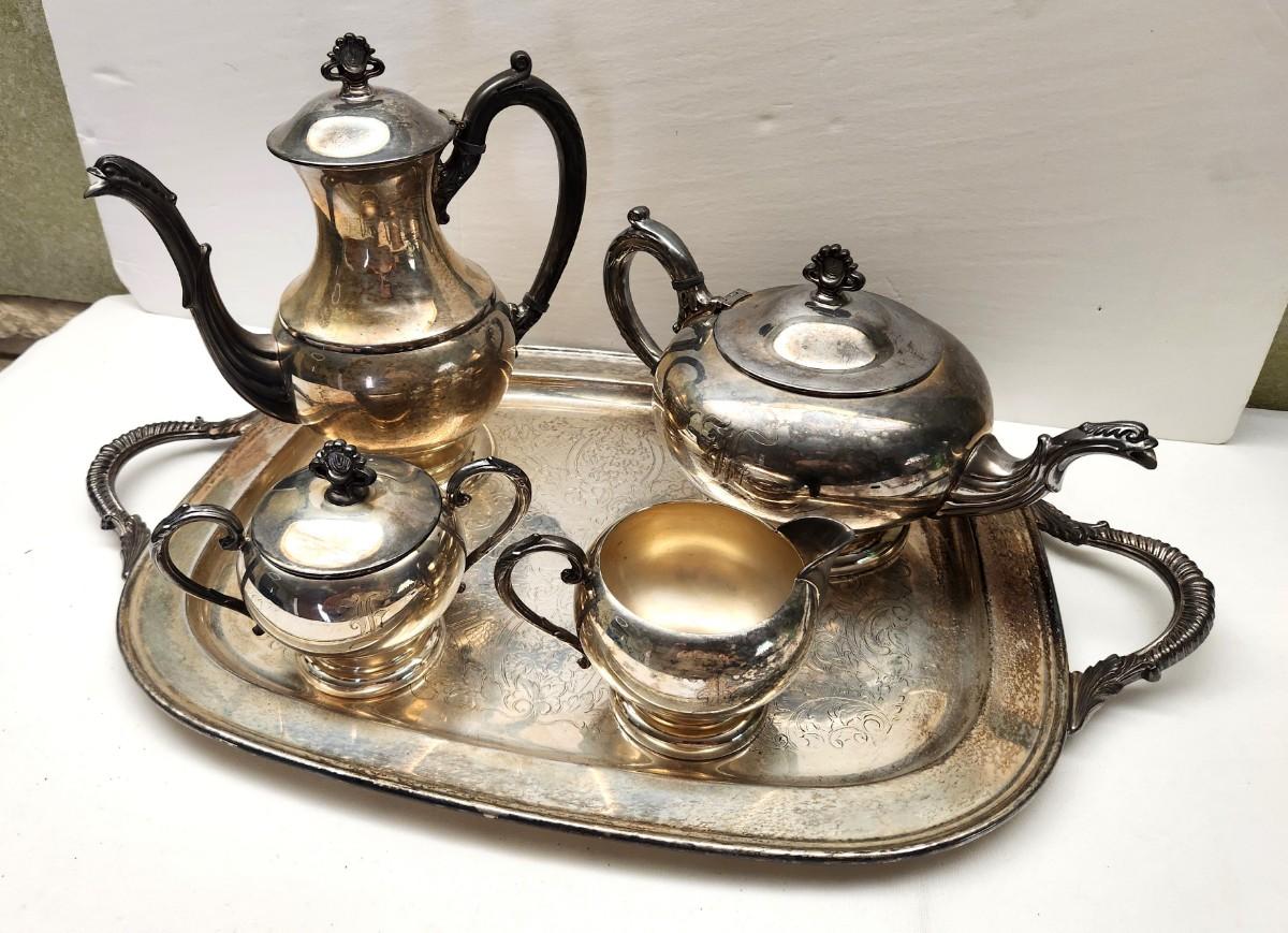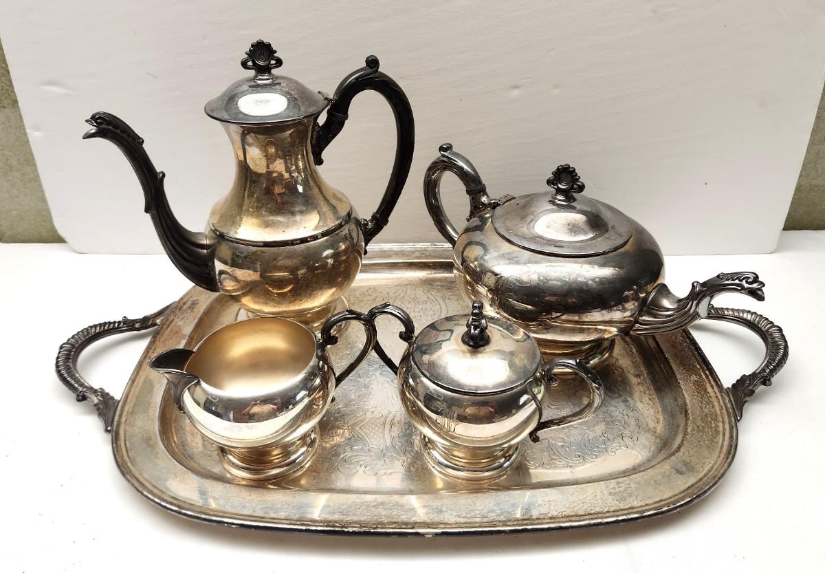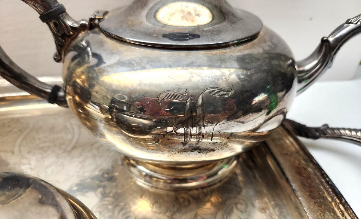 Lot #140 Vintage Silverplate Tea Service - monogram "F"