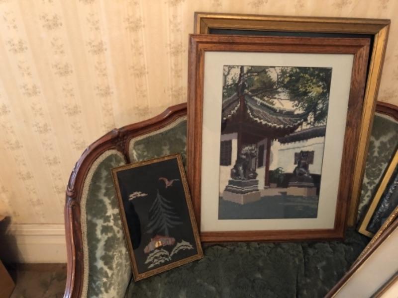 Lot 140F. Large lot of framed art--photos, needlepoint prints--Was $25 “” NOW $15