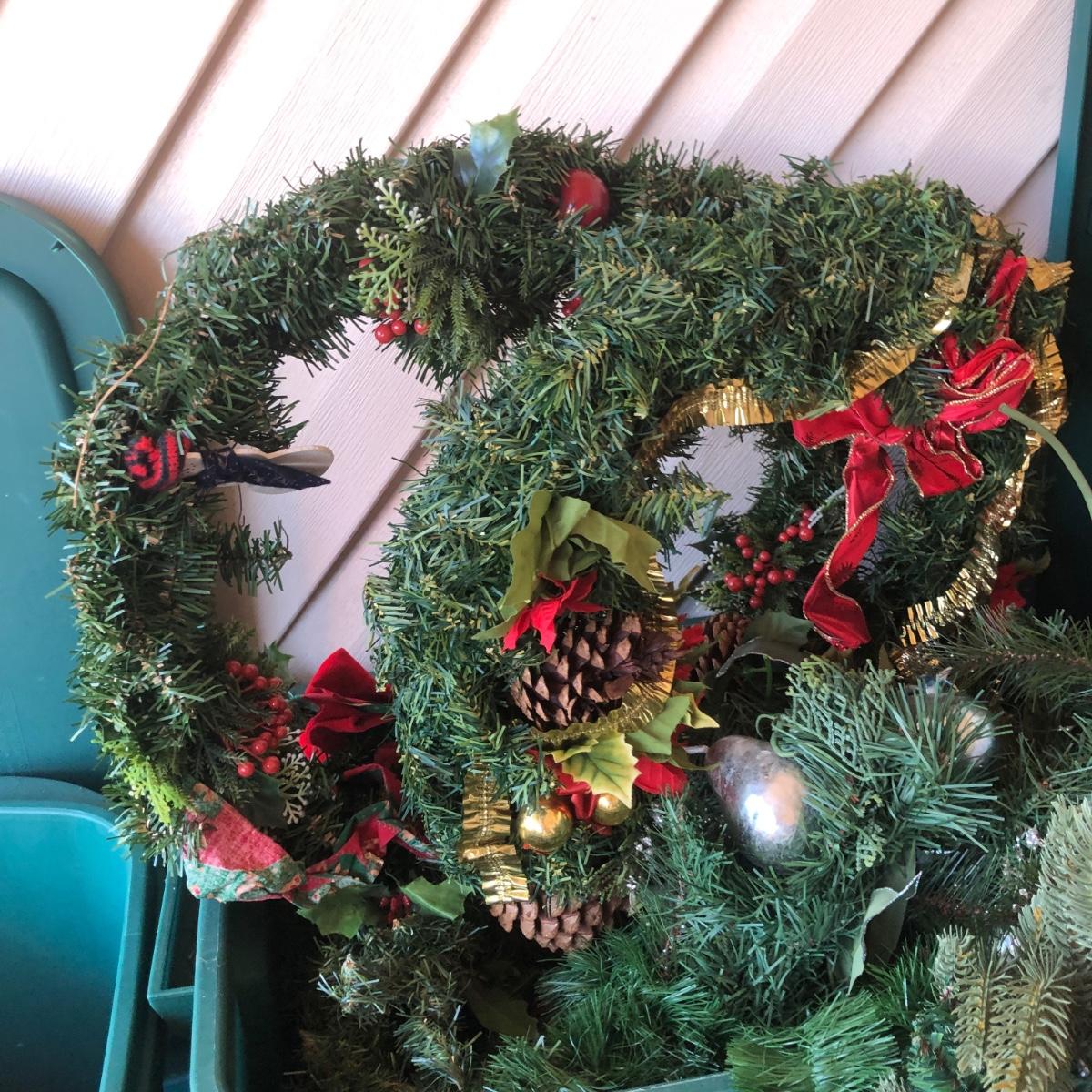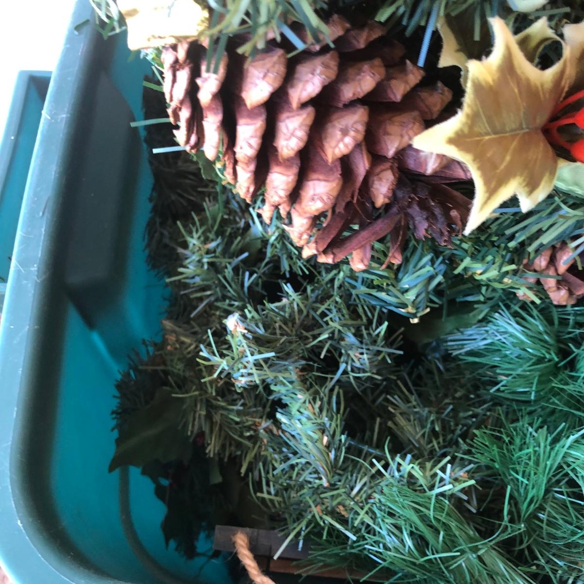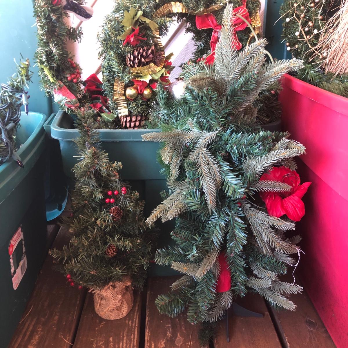 LOT 140M: Christmas Decor Collection - 8' Artificial Tree, Smaller Trees, Various Wreaths & Garland, Nativity Set