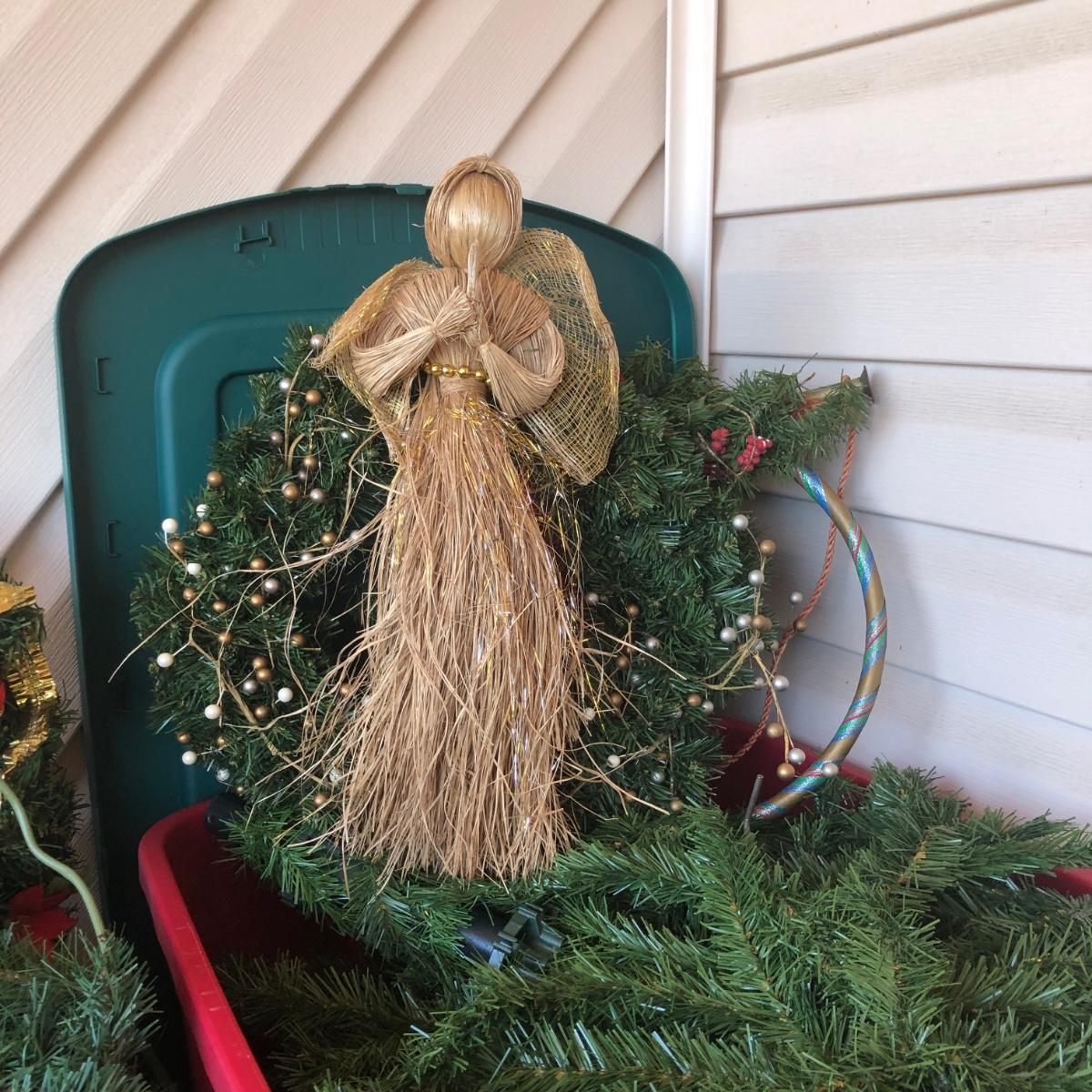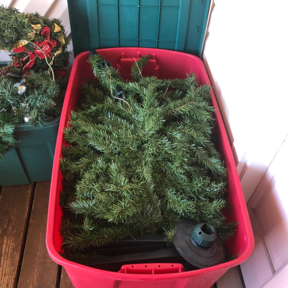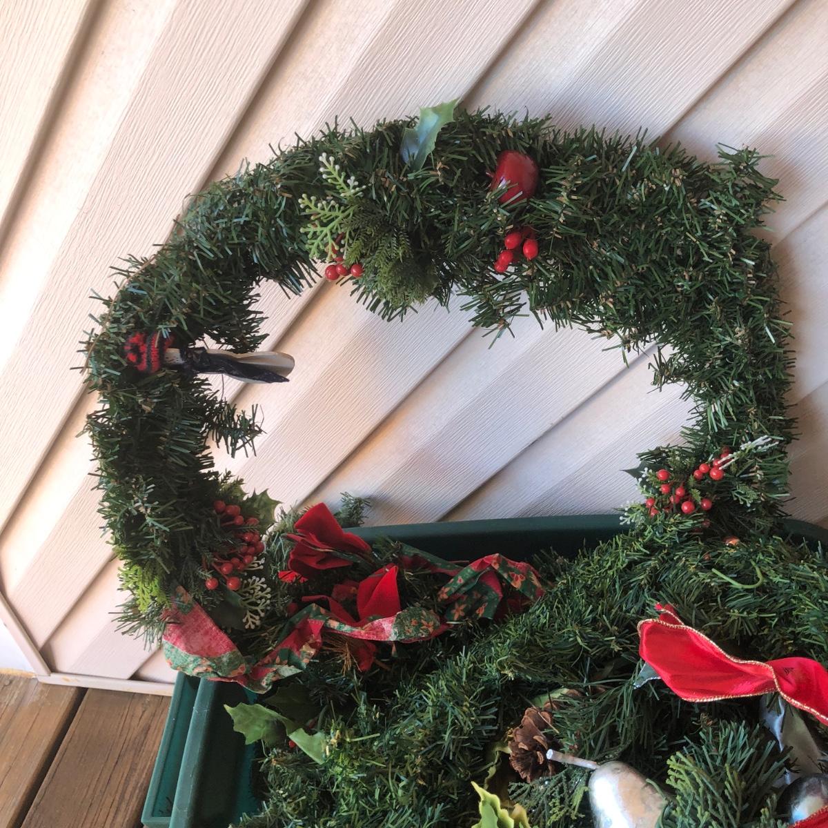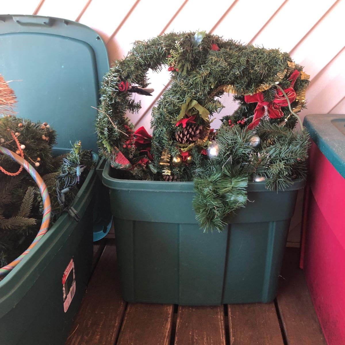 LOT 140M: Christmas Decor Collection - 8' Artificial Tree, Smaller Trees, Various Wreaths & Garland, Nativity Set