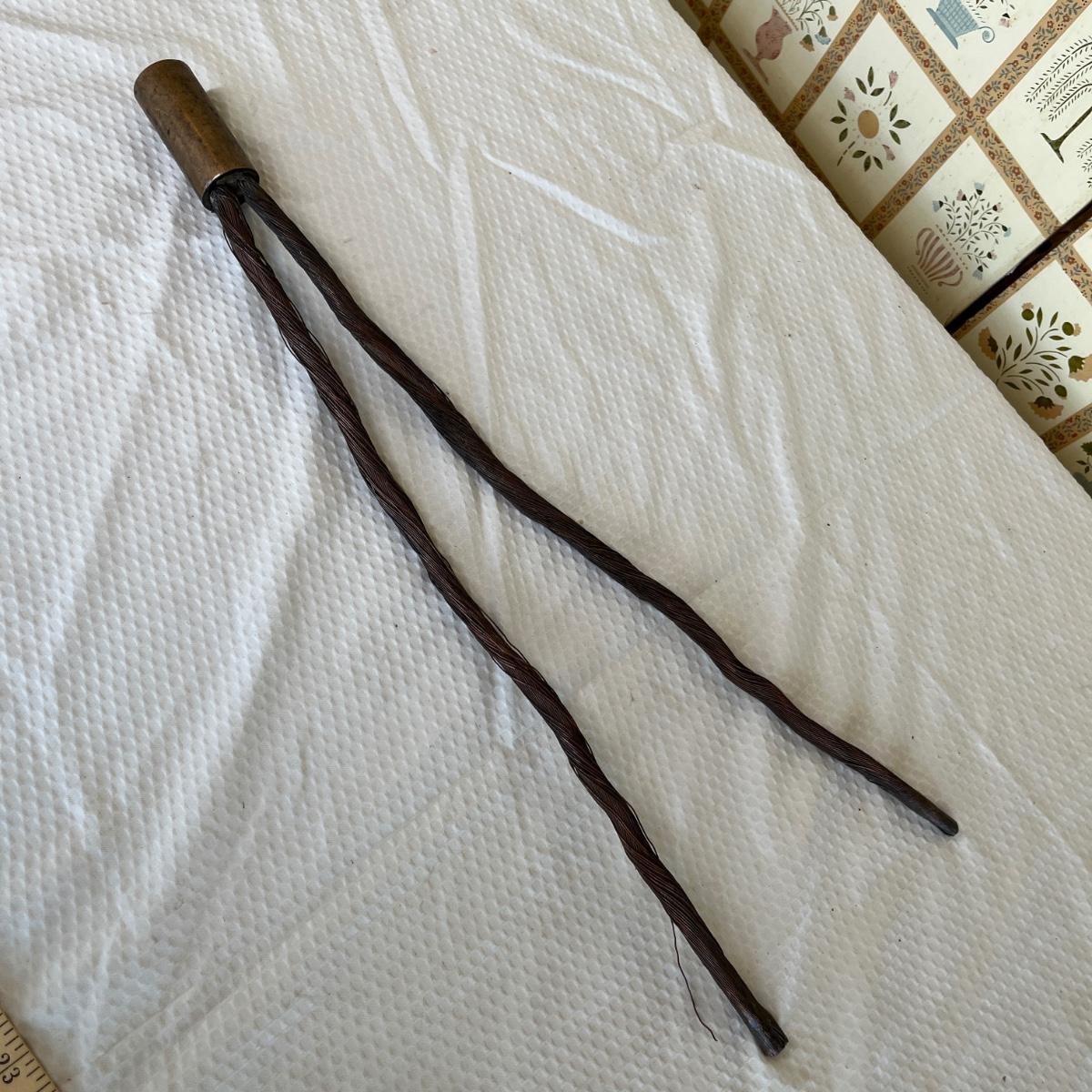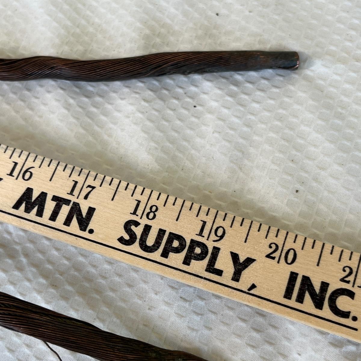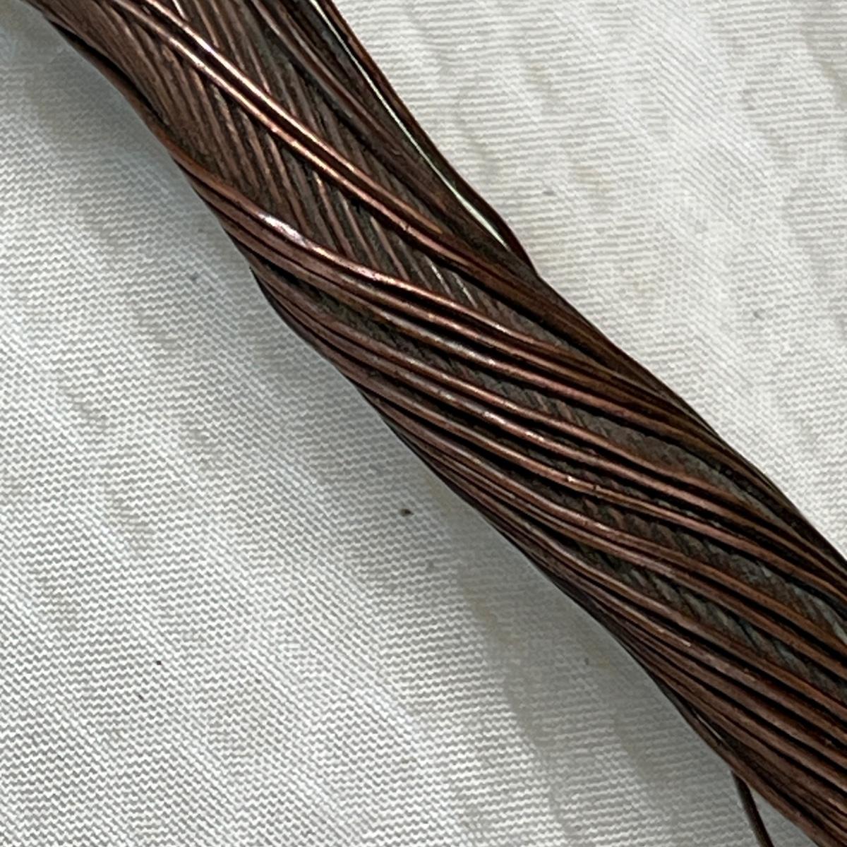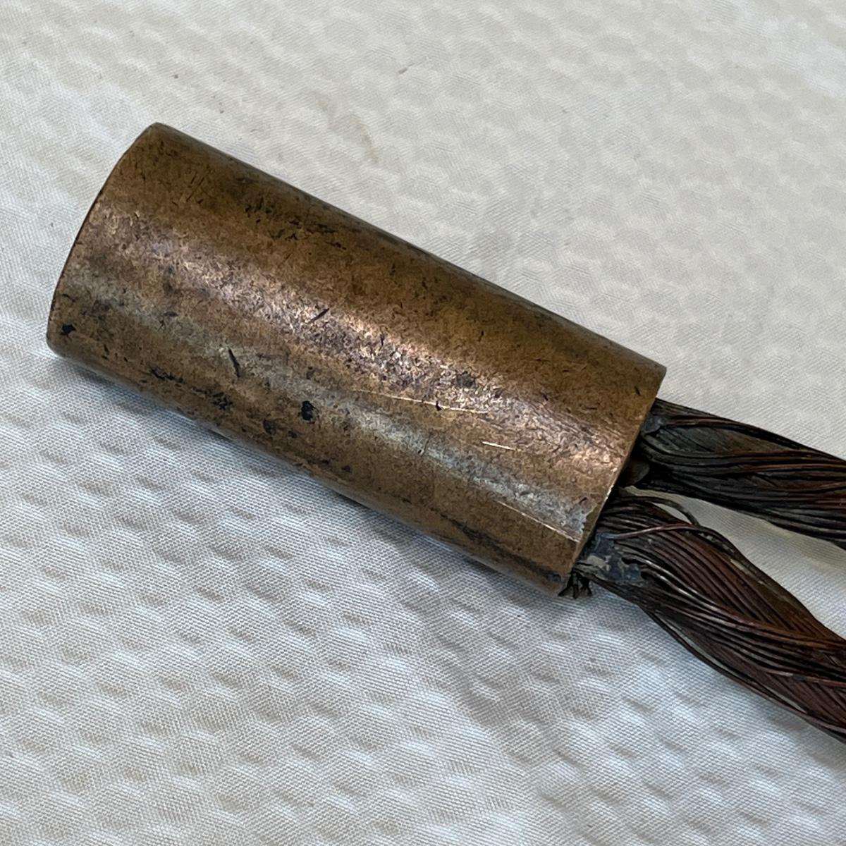 The end is brass, the braided wire is copper. A divining rod? It is interesting. Let JR know if you know what this cool piece is used for!