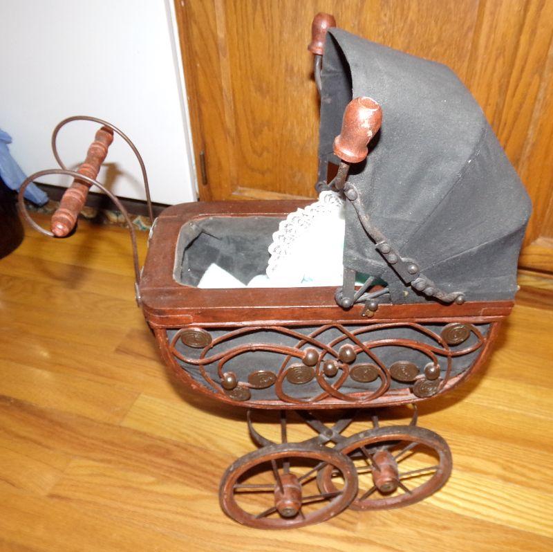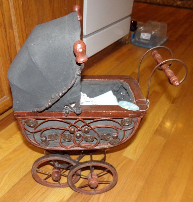 THIS LOT INCLUDES A SOFT BABY DOLL, STROLLER, CRADLE AND PLAY CLOTHES IRON (NOT TESTED)