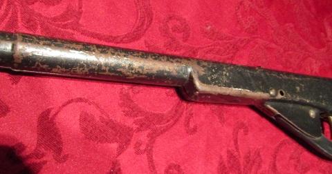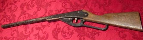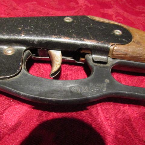 THE DAISY IN THE BACKGROUND DOES COCK AND FIRE. IT HAS A LOT OF RUST AND PAINT LOSS TO THE BARREL, IT IS ALSO STARTING TO SPLIT.