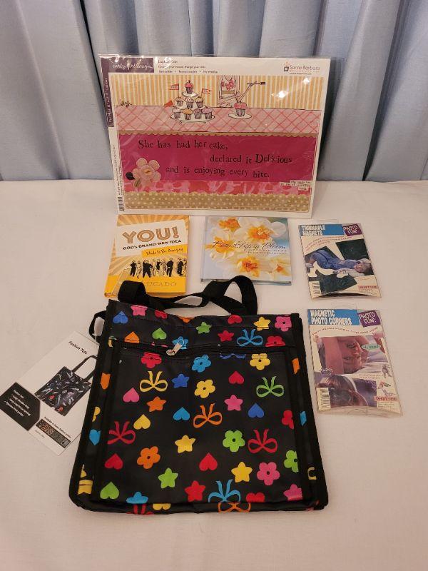 Lot 141: New Tote, Magnets, Books and Laptop Skin