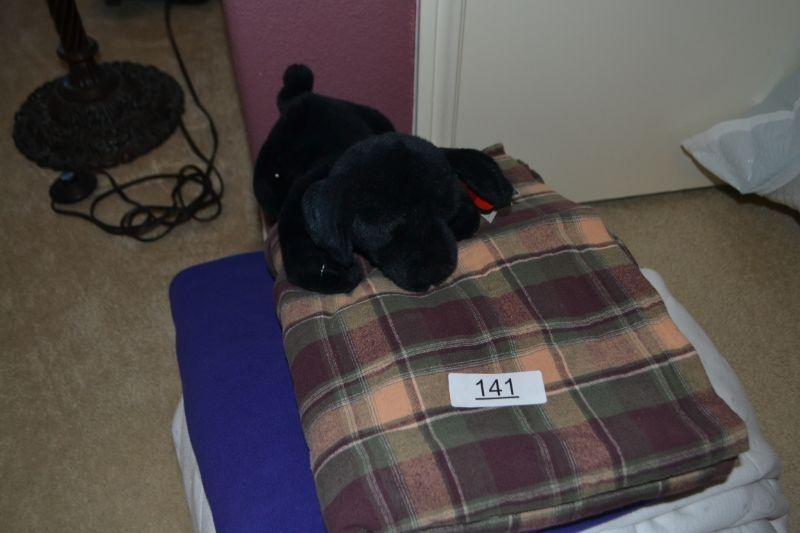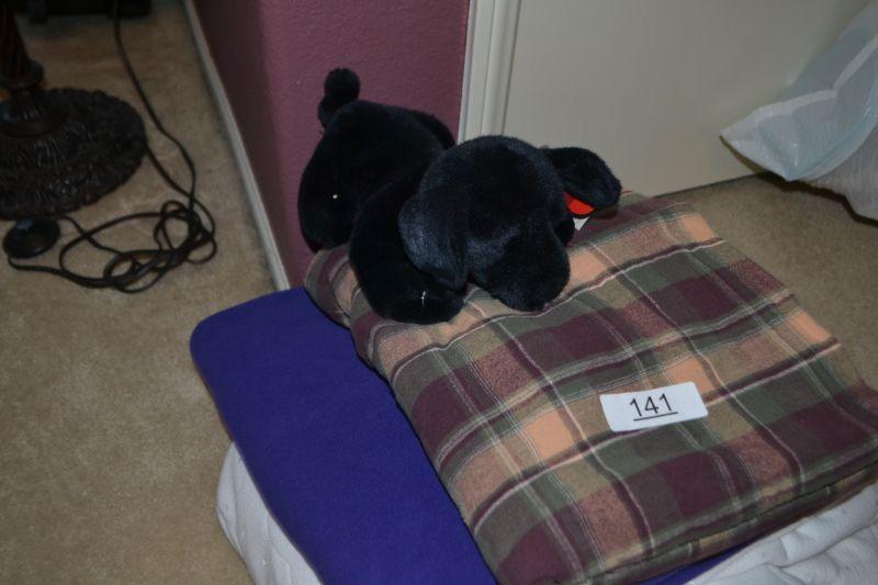 LOT 141  BLANKETS AND STUFF ANIMAL DOG