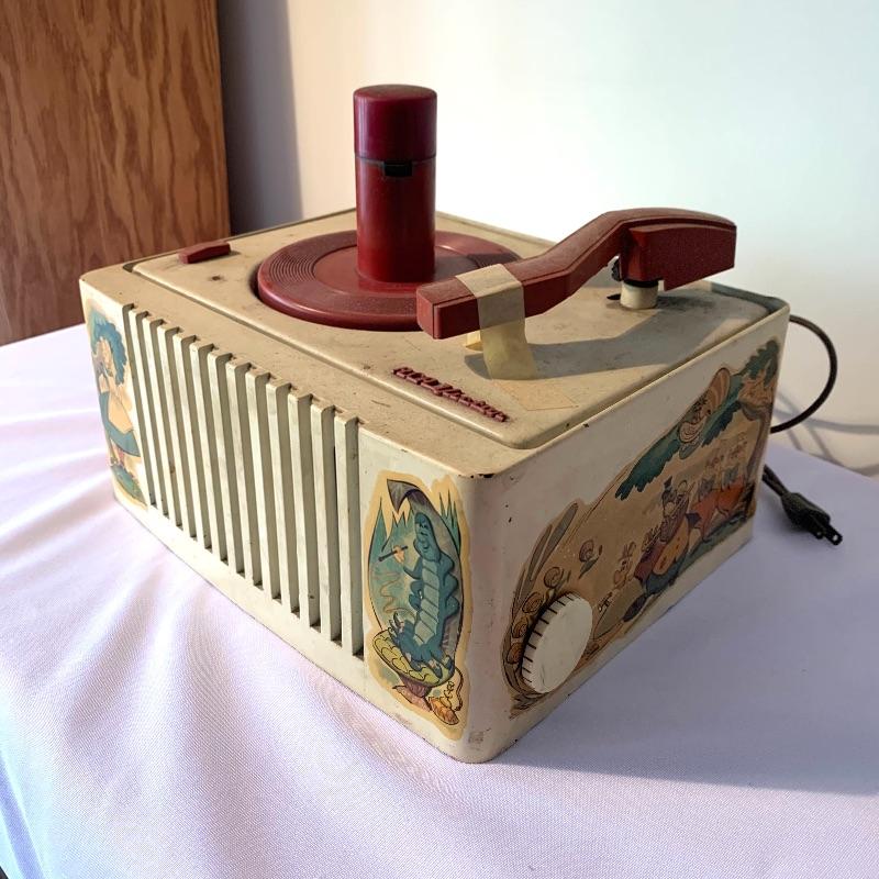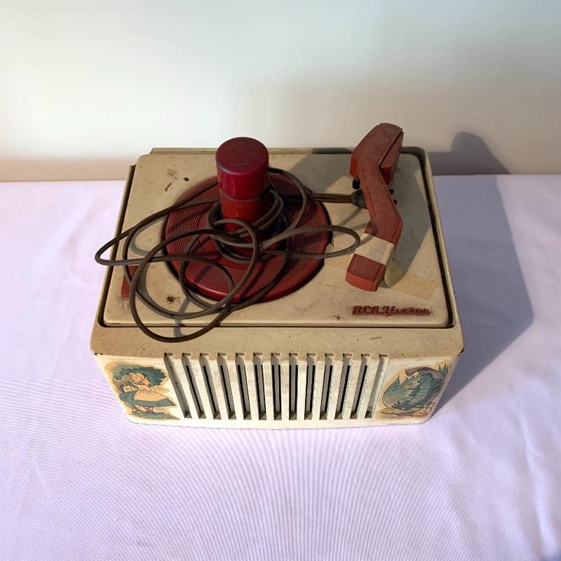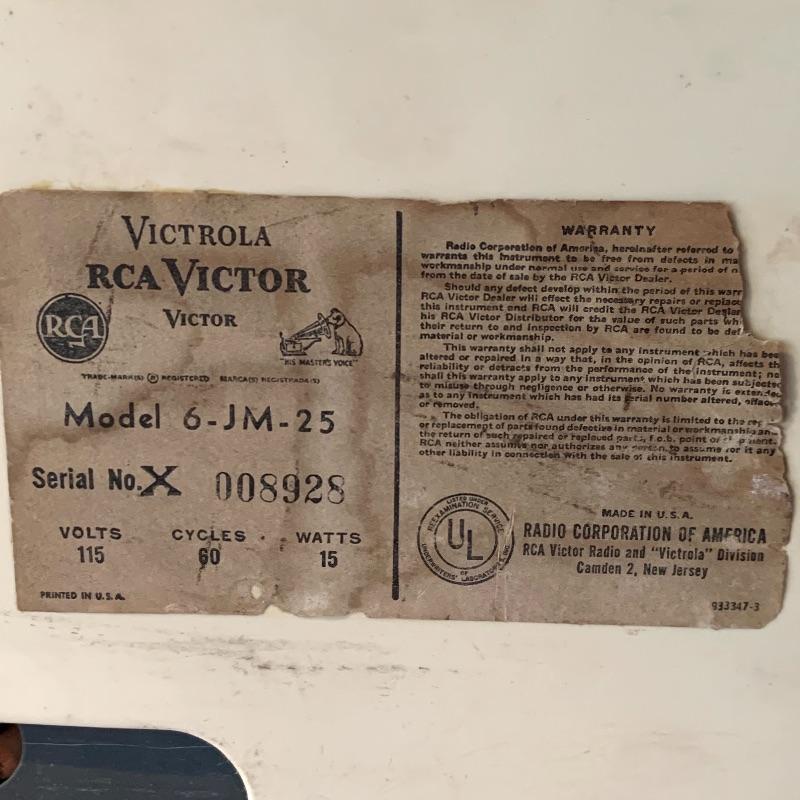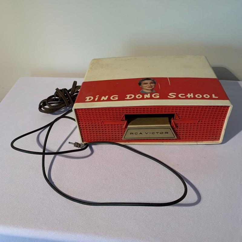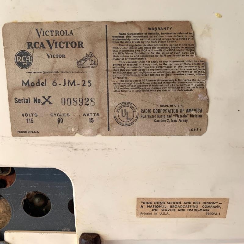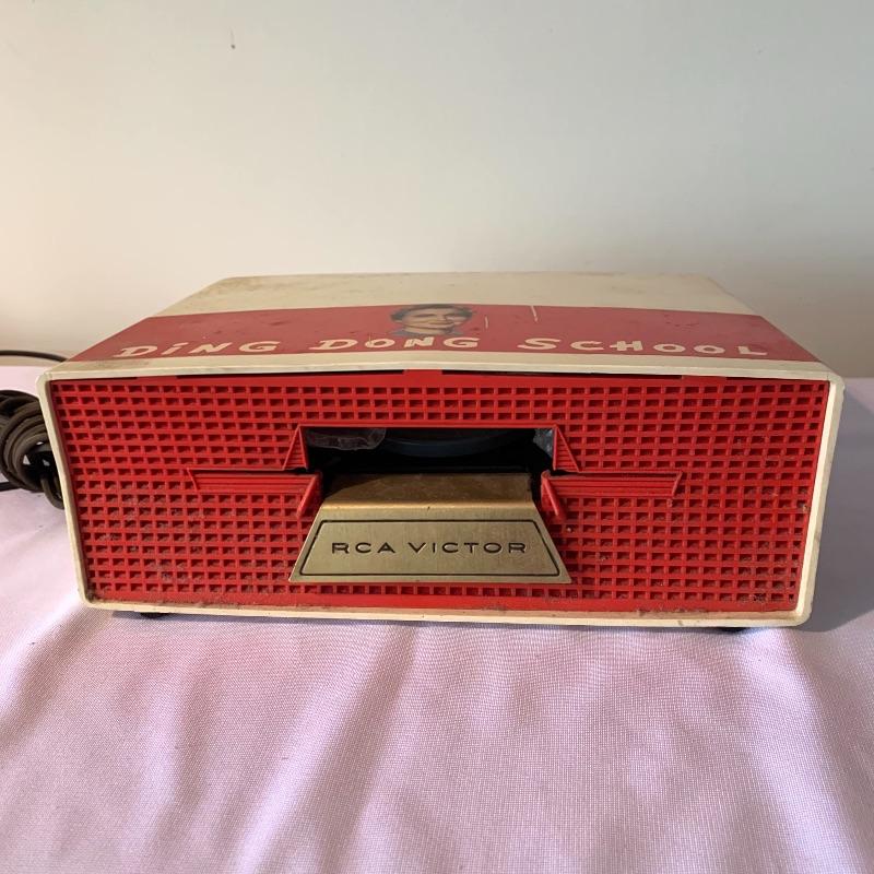 3) The last one is a Victrola RCA Victor Ding Dong School record player. It is Model no. 6-JM-25 with Serial No. X 008928. Has an electrical cord, but when plugged in to test it it did not appear to turn on. Another cable is also attached to this record player. Shipping is available for this lot.