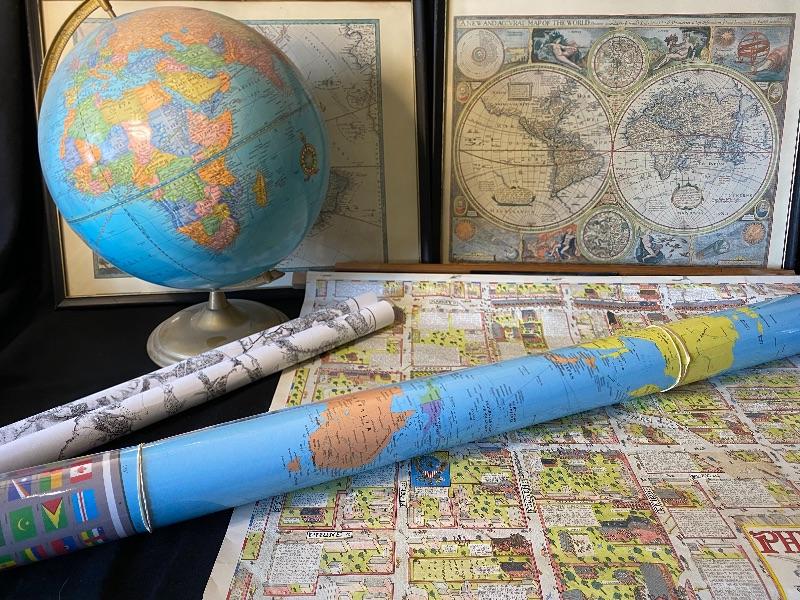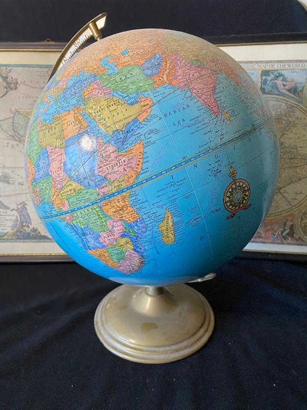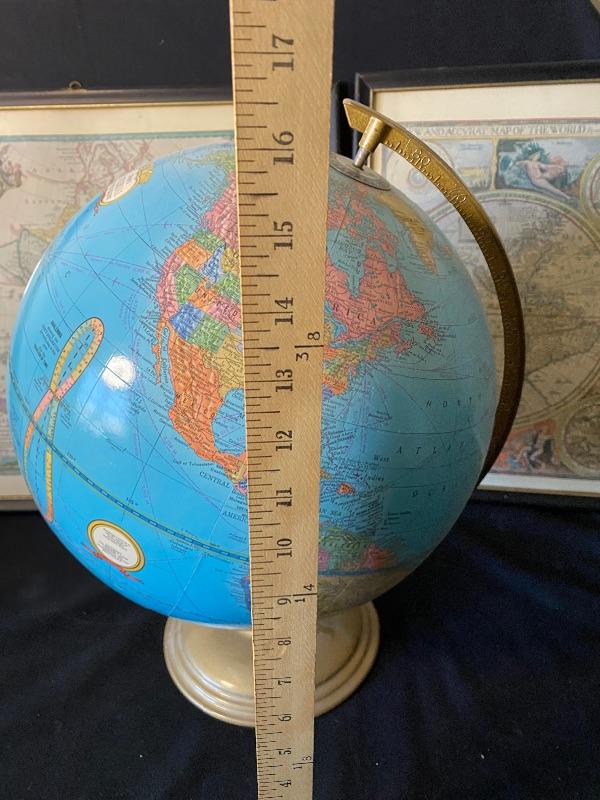 Lot 141: Vintage Globe, Framed Map Art, and More