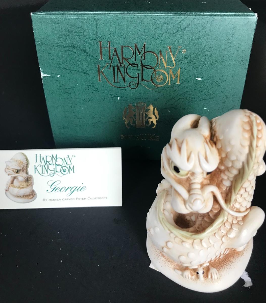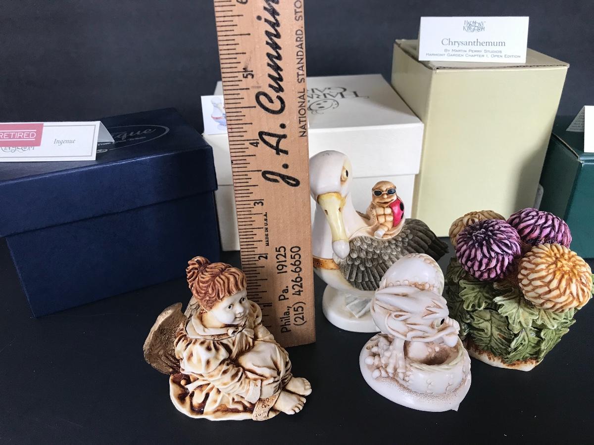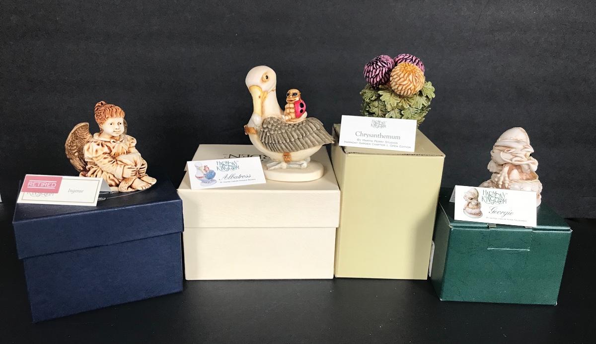 Albatross is a retired figure by Monique Baldwin, Georgie is a solid figure dragon. In 1999 - 2000, Peter carved a series of 12 solid figurines designated as NetsUKes. This is one of those pieces. Ingenue is from the Angeltique collection, and Chrysanthemum by artist Martin Perry, was retired in 2000.