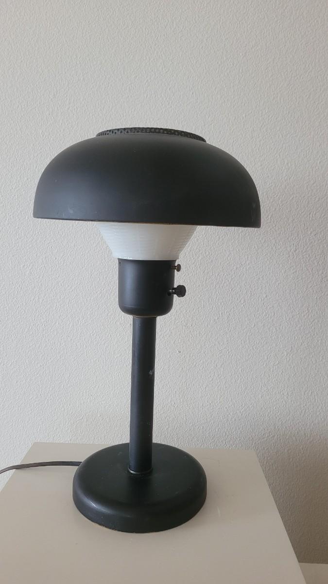 Lot 141: Small Antique Metal & Milk Glass Lamp