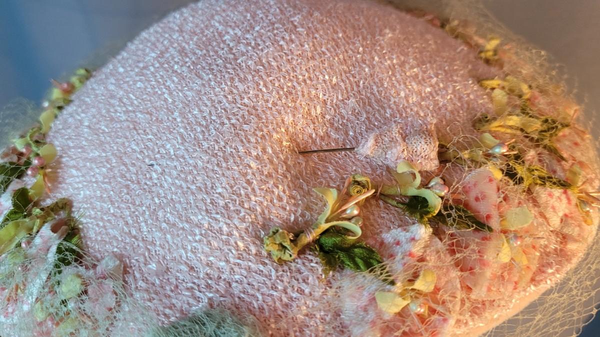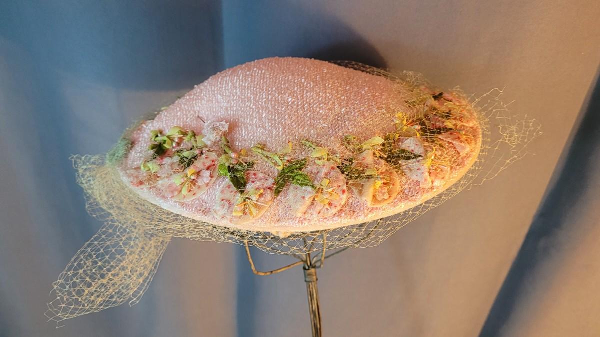 Lot 141: Vintage Pink Flowers and Veil Hat