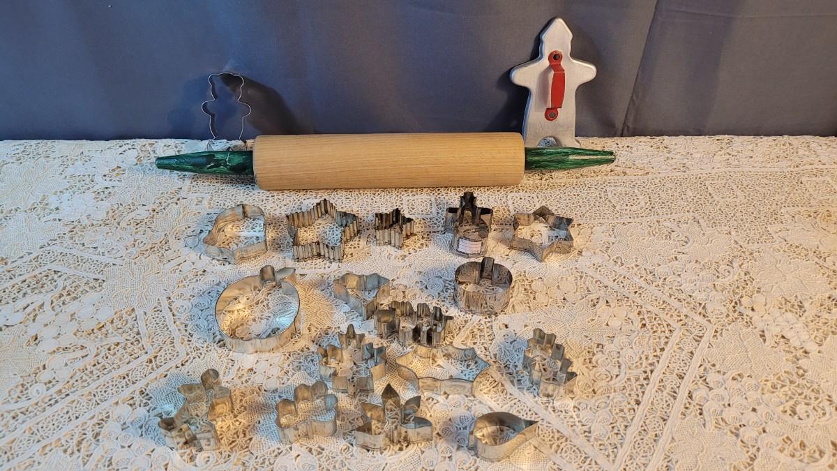 Lot 141: Vintage Cookie Cutters and Rolling Pin