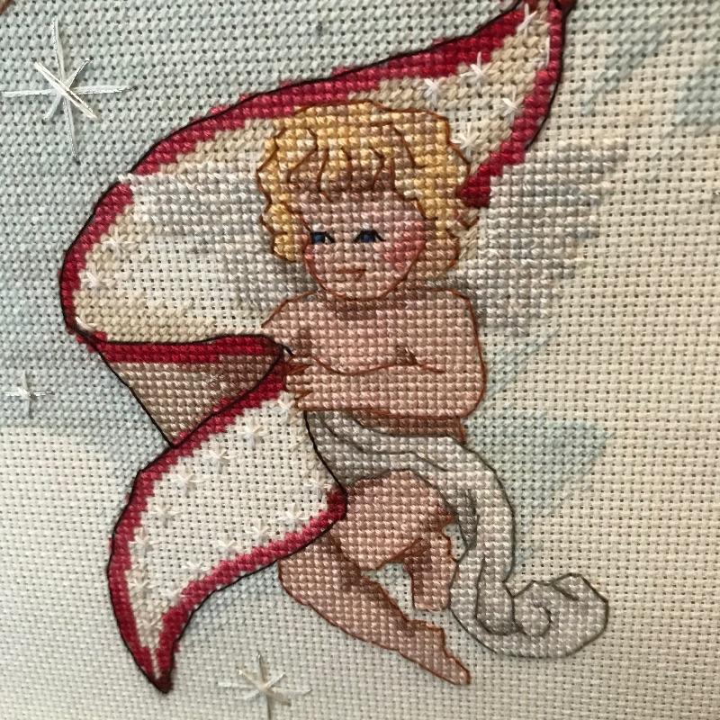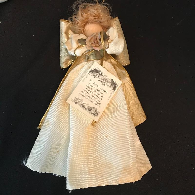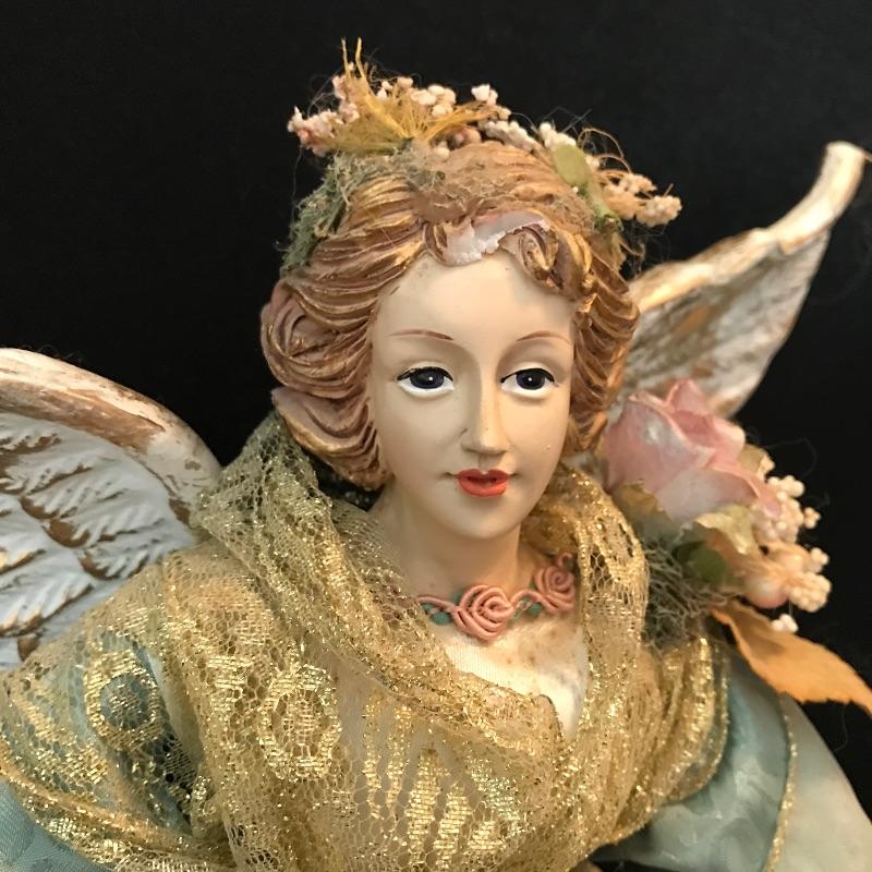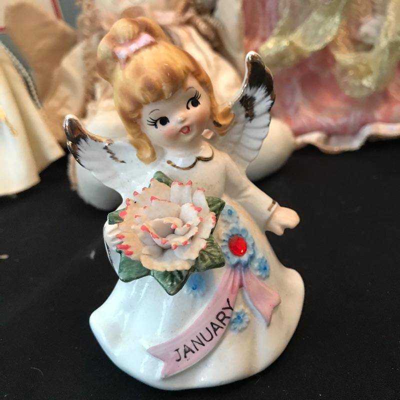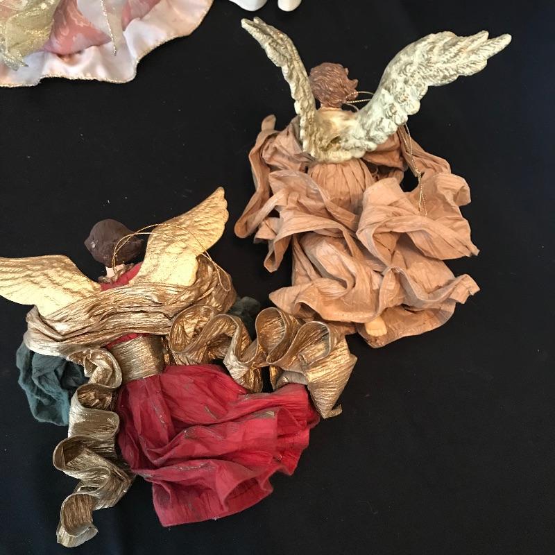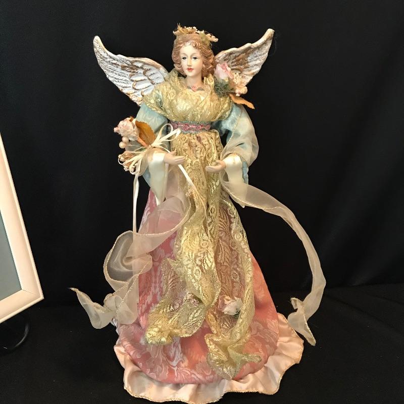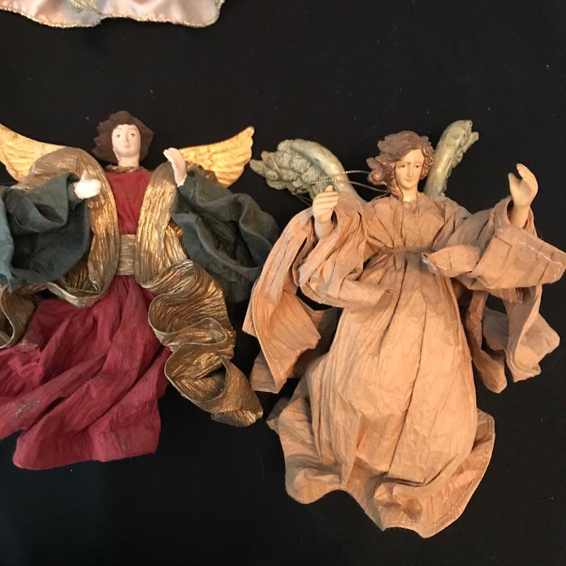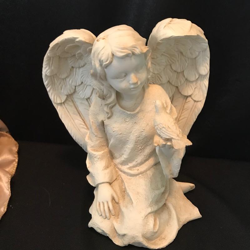 Plethora of angelic figurines and ornaments. Angels from multiple kinds of materials- like cloth, husks, porcelain and even a Birthday Angel from Lefton China. The largest angel is 17” and is adorned with real dried flowers. She has a small chip in her hair, it blends in well with her hair, see photos. Lot also has a lovely needlepoint angel-cherub Christmas art in a white wooden frame. Frame measures 19.5” x 18.5”. No shipping.