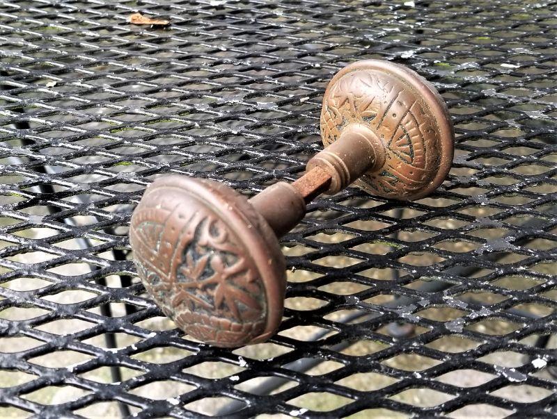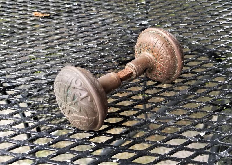 Interesting antique Victorian era doorknob set - all original - very ornate - measures about 6 inches long. We only have the one.