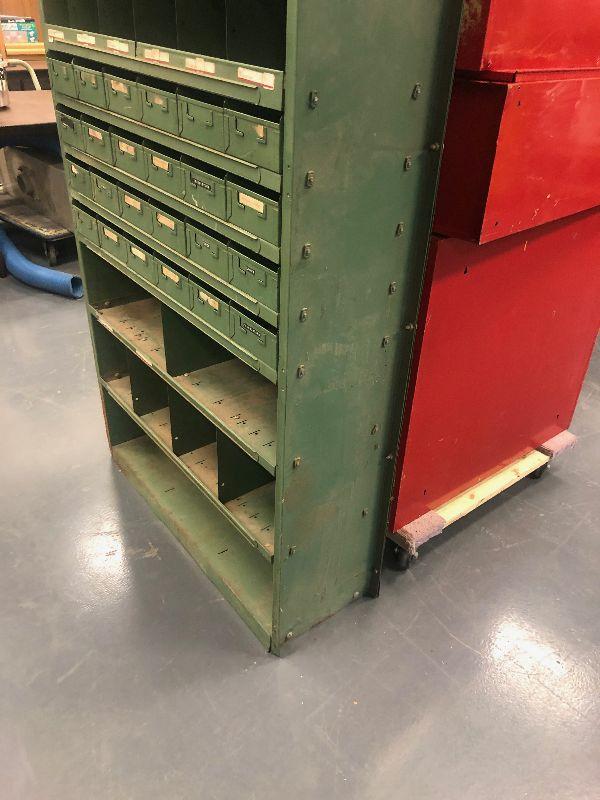 Lot #141 Awesome Green Metal Parts Bin  - in/out doors