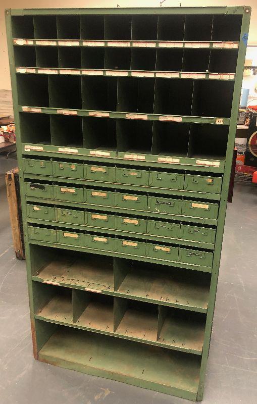 Any serious creative would not let this one get away! 36 x 12 deep x 67 high Excellent for crafter / tool room. Some minor rust which lends to authenticity