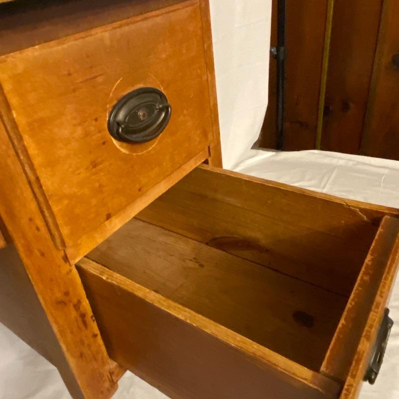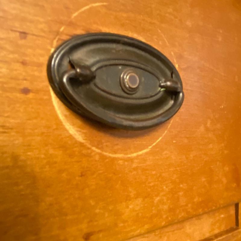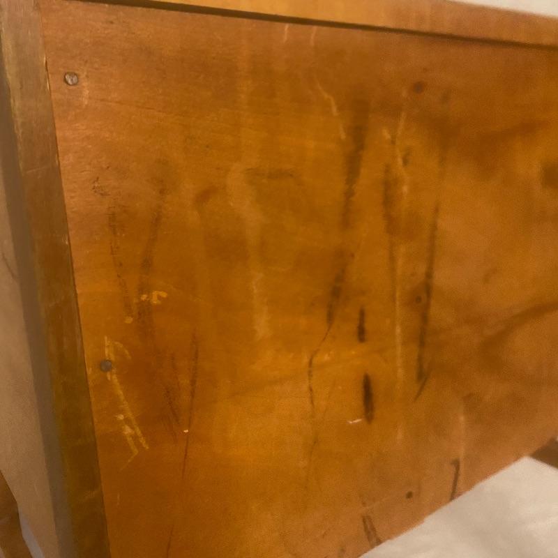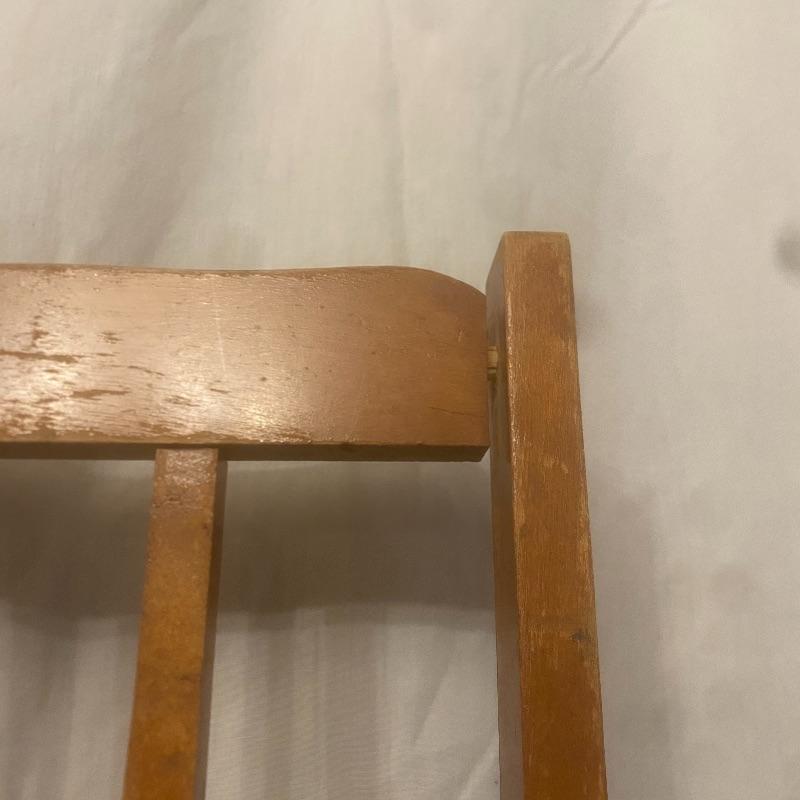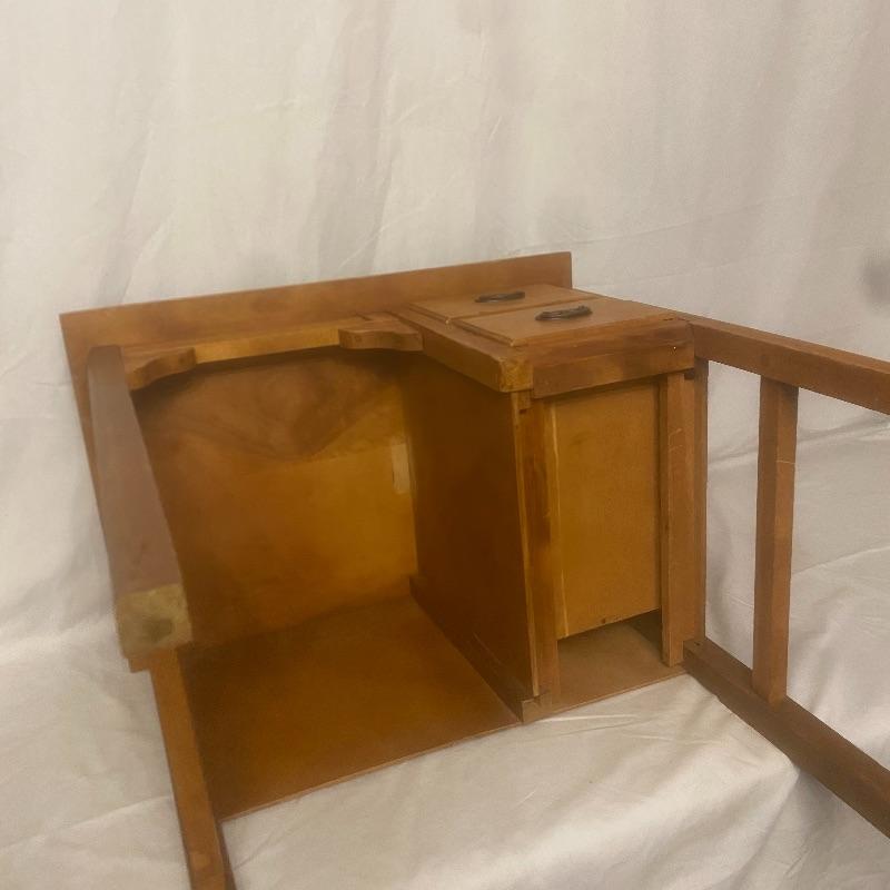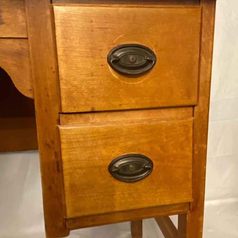 Adorable desk and chair for the little one in your life! Measurements for the desk are 23x16x24. Two drawers and space flor the matching chair to push flush into. Small chair measurements are 10.5x11x15 with the back, the chair stands 27.5” tall. A few spots could be tightened, see photos. Local pickup only.