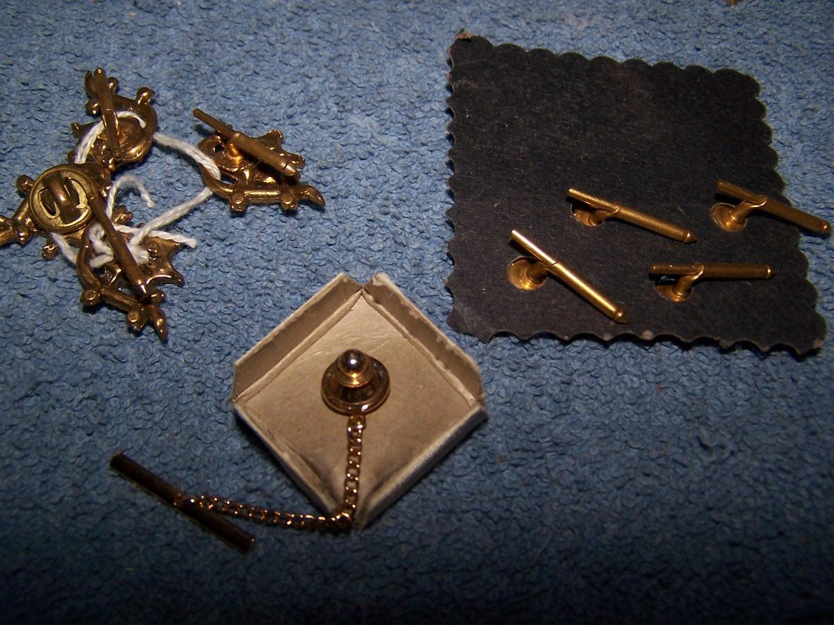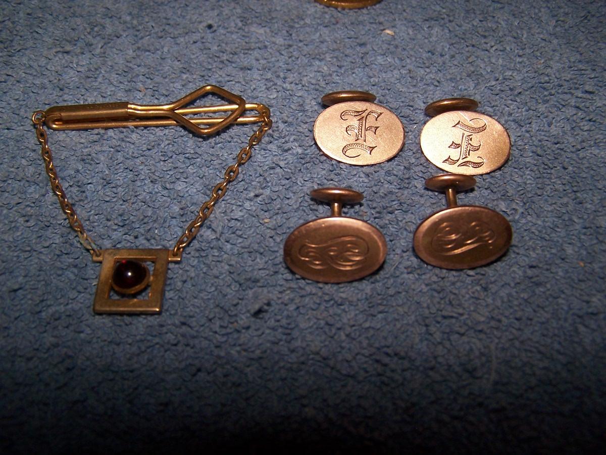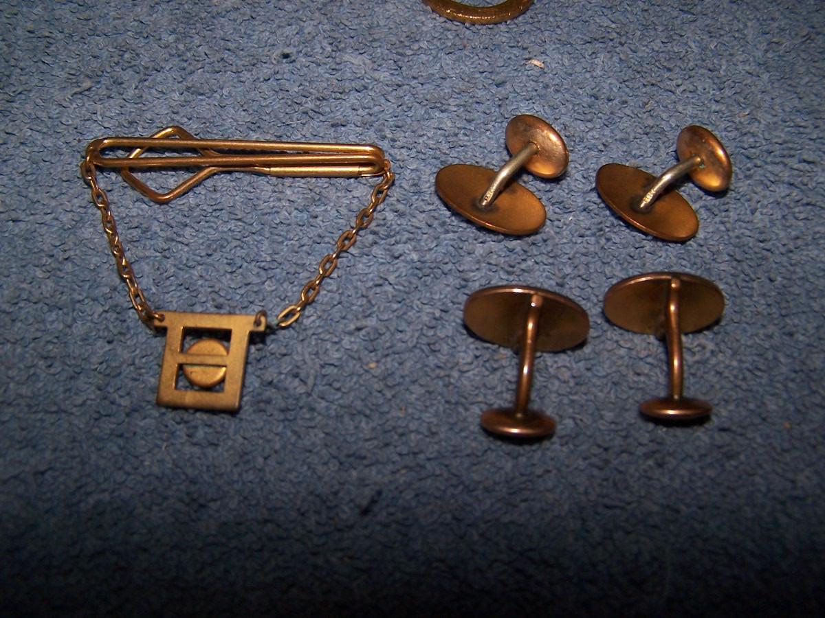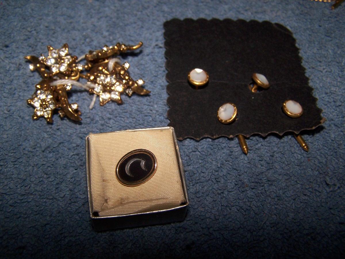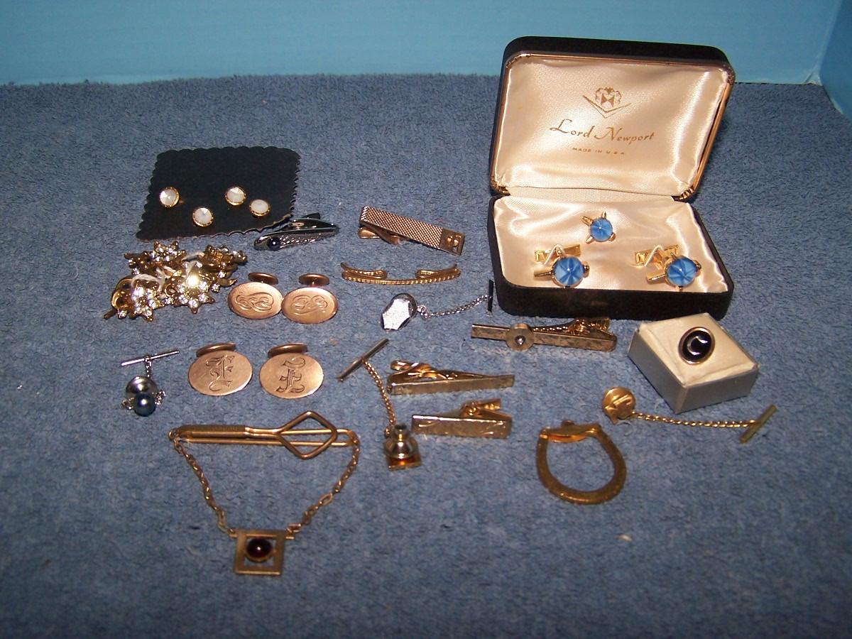 SOME FAB VINTAGE CUFFLINKS/TIE CLASPS&TACS/BUTTONS!!! SEVERAL MARKED(NO GOLD OR STERLING).. LIGHT WEAR..