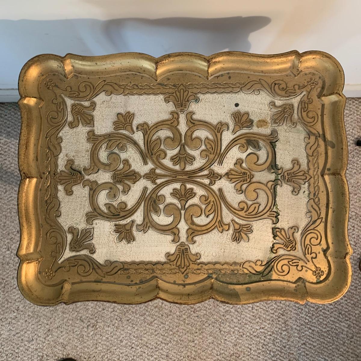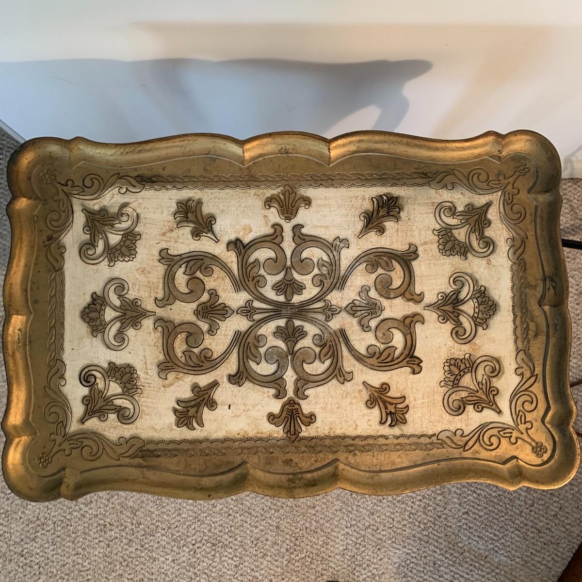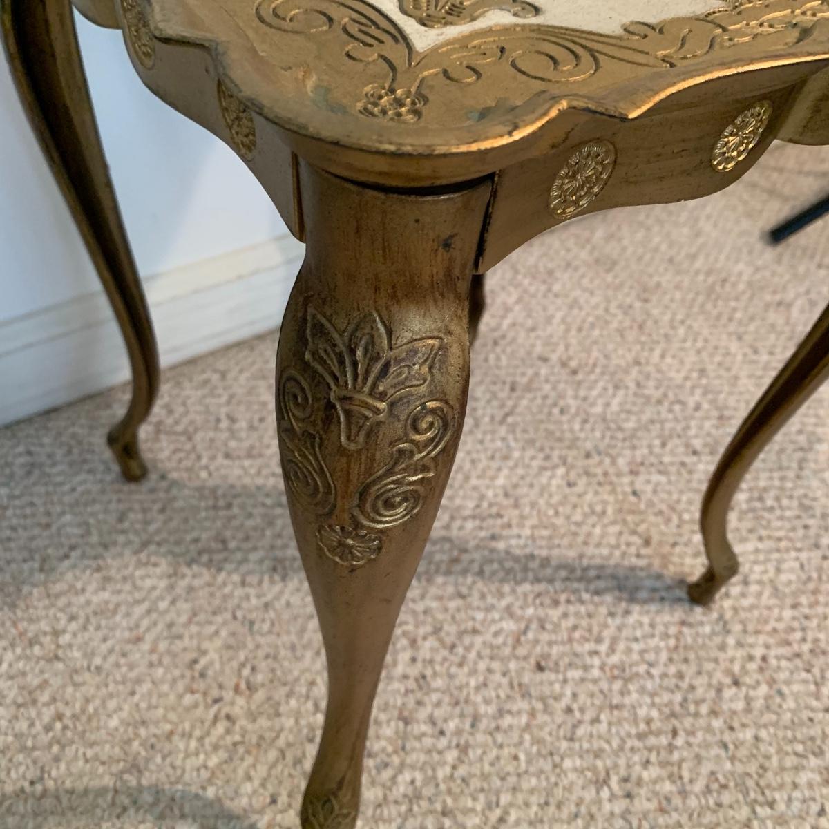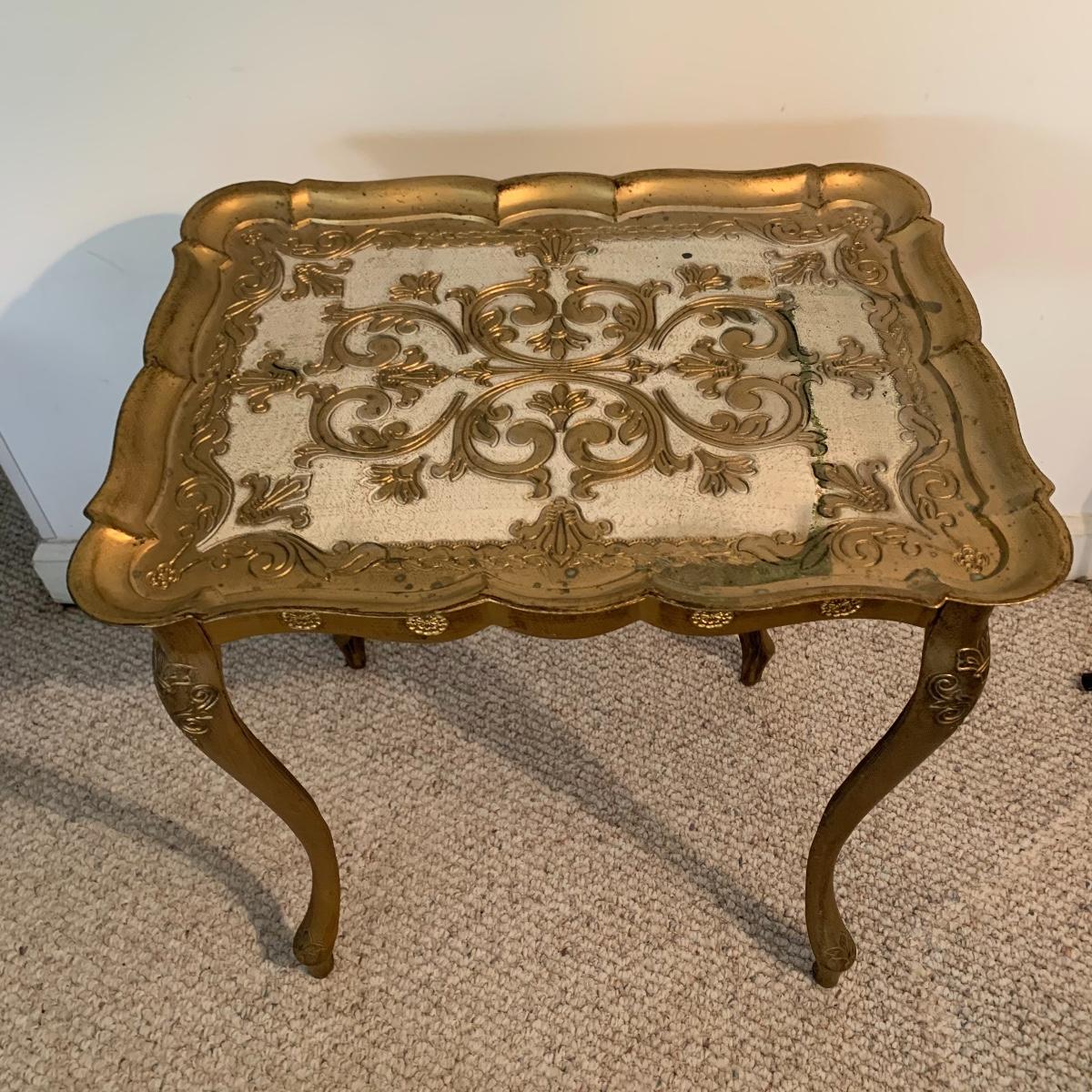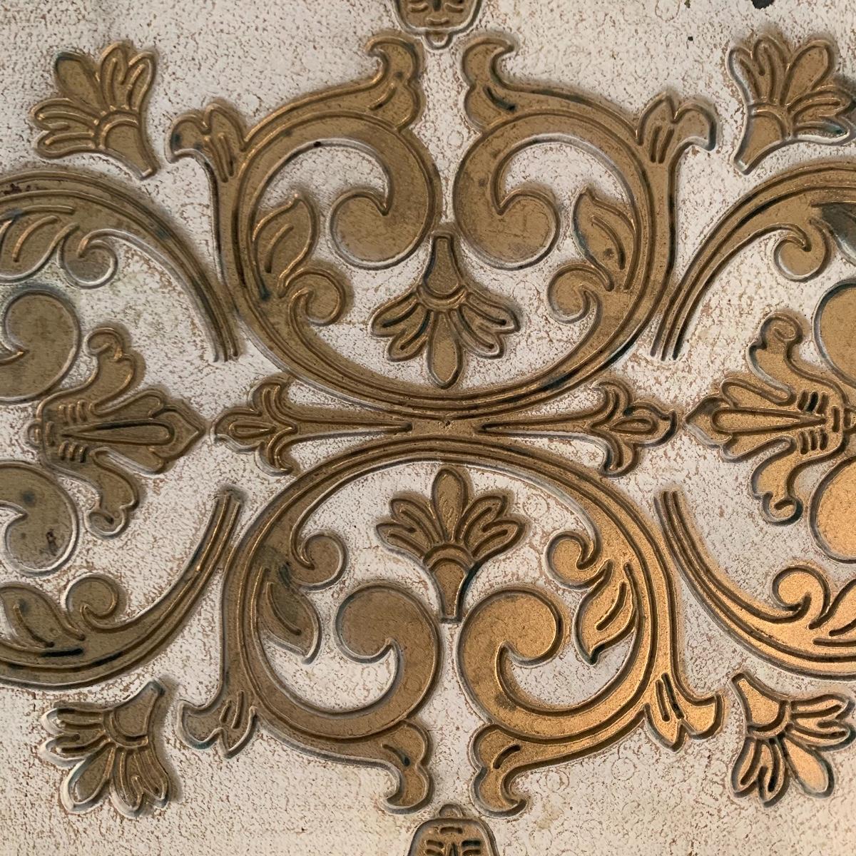 Decorate indoors or outdoors with these adorable Italian nesting tables. All three feature detailed engraved trim and are stamped “Made In Florence Italy”. The tallest of these three is 22” tall X 22” wide X 14” deep. The second measures 19” tall X 17” wide X 13” deep. The last is 17” tall X 12” X 12” deep. All three are made of plastic, meaning they will last a long time!. Local pickup only.