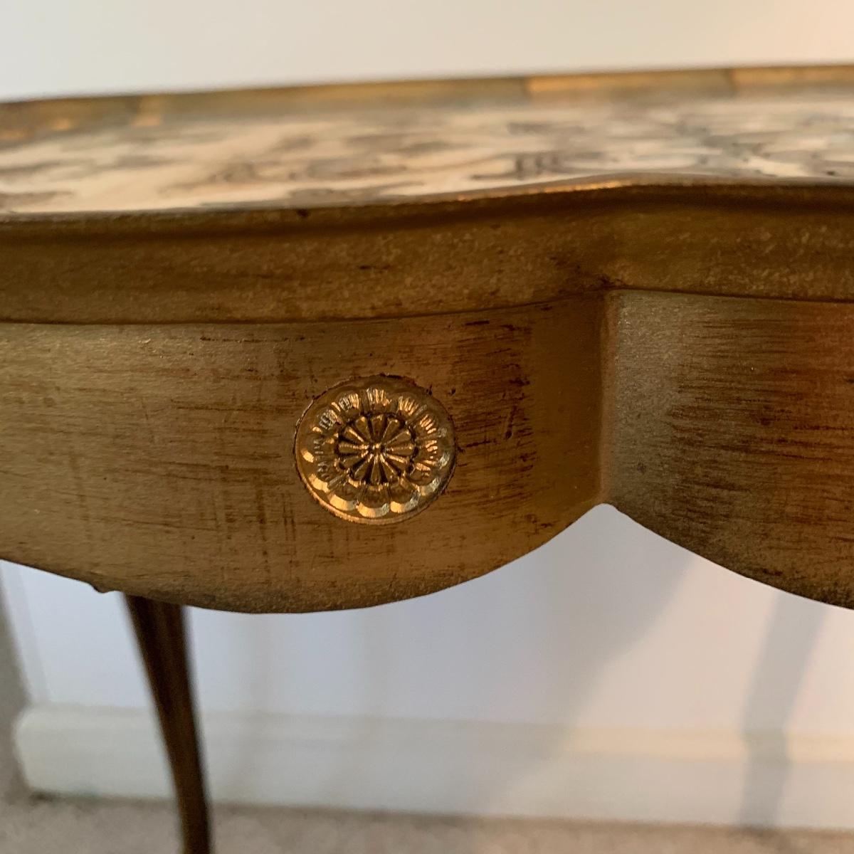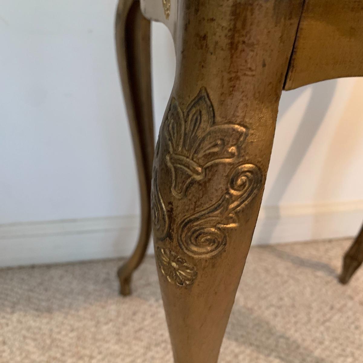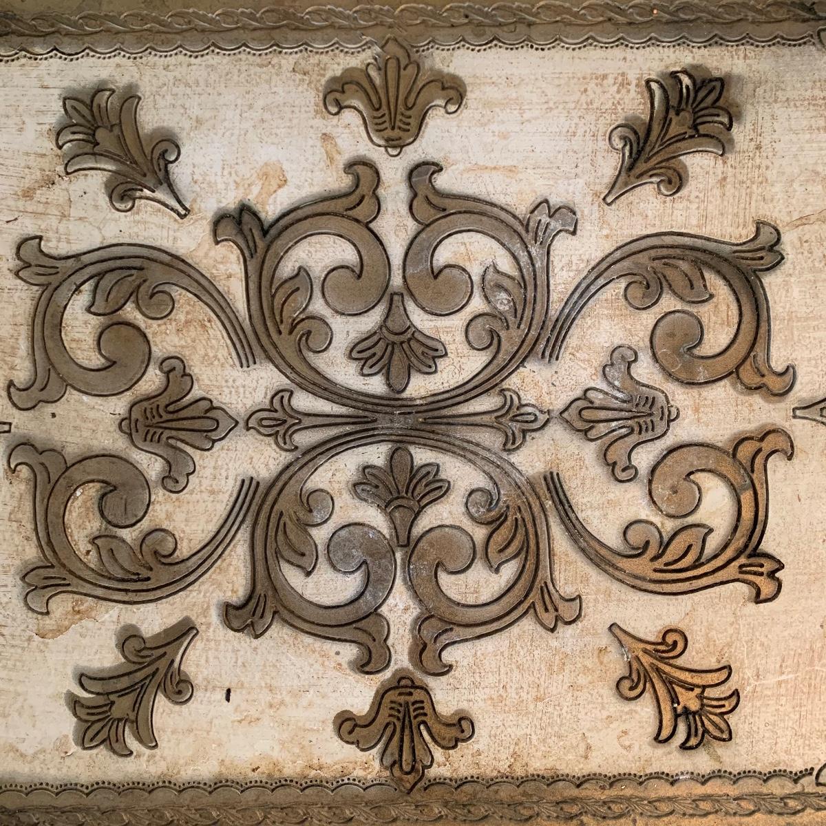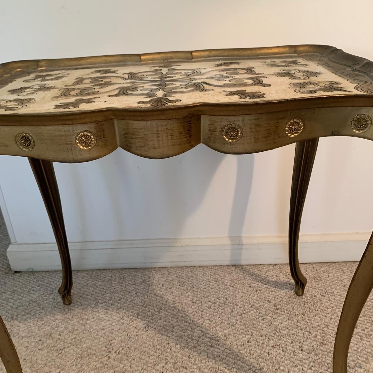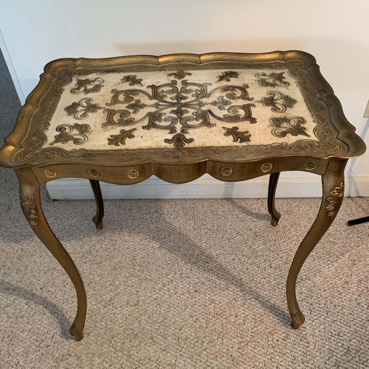 Decorate indoors or outdoors with these adorable Italian nesting tables. All three feature detailed engraved trim and are stamped “Made In Florence Italy”. The tallest of these three is 22” tall X 22” wide X 14” deep. The second measures 19” tall X 17” wide X 13” deep. The last is 17” tall X 12” X 12” deep. All three are made of plastic, meaning they will last a long time!. Local pickup only.