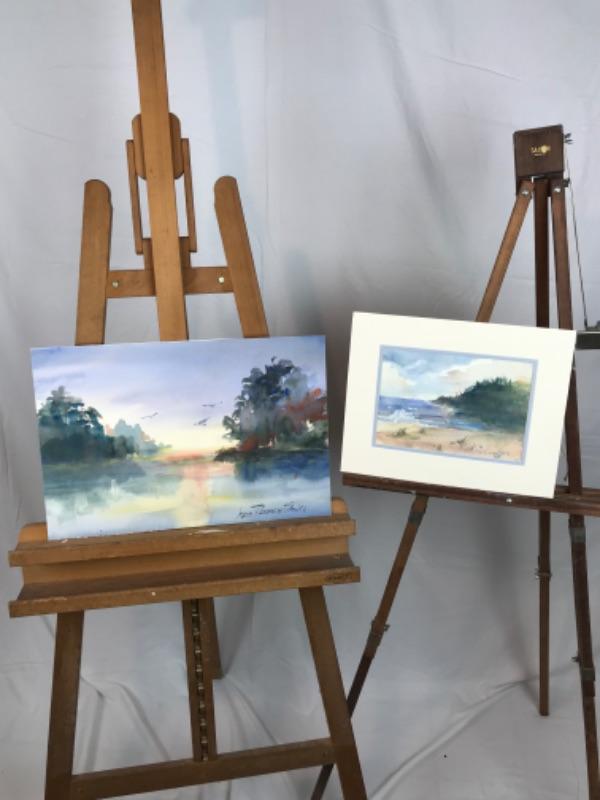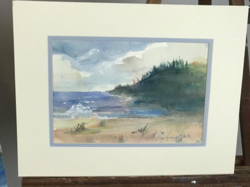 Pair of Jean Ranney Smith signed original watercolor paintings “River Scenery “ measures 19”x13”, “Private Beach” measures 14”x11” including mat