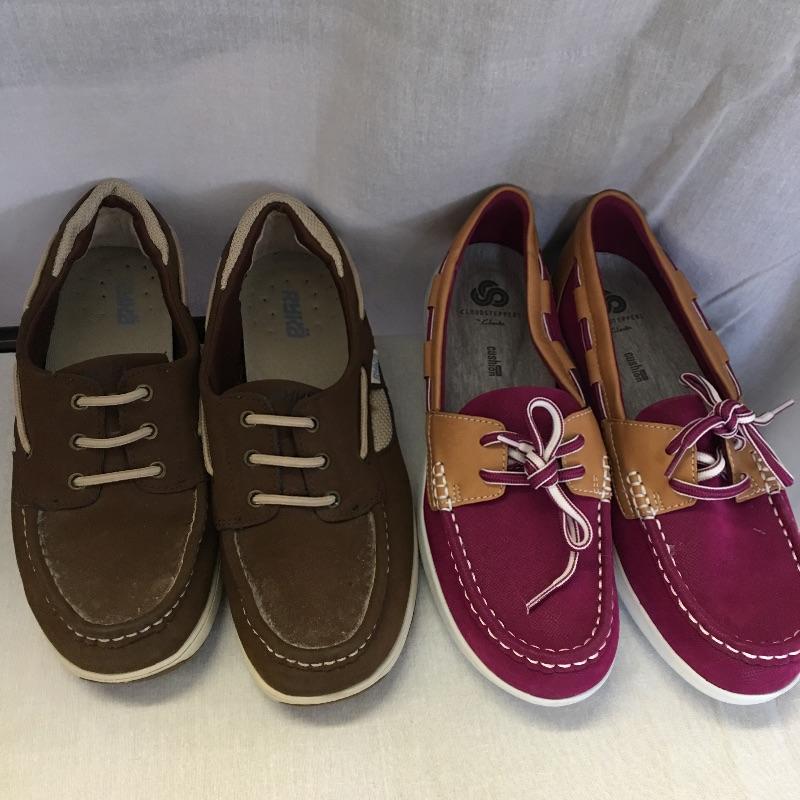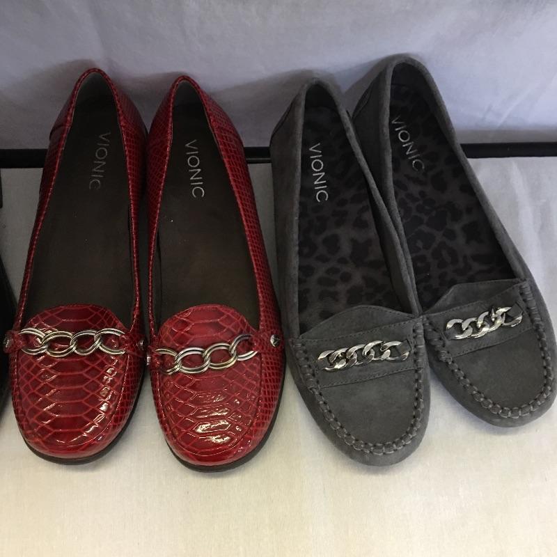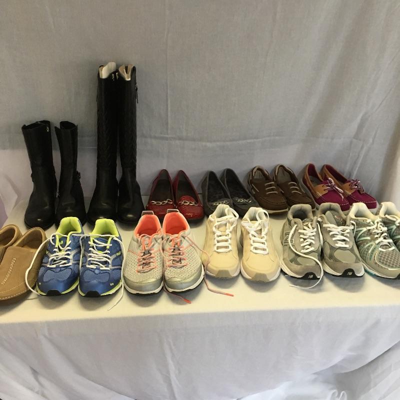 Ladies shoe array include New Balance, Vionic, Weil, Ryka and more. A great selection of athletic shoes, tall boots, loafers and more. Shoes range in sizes from 8-9.5