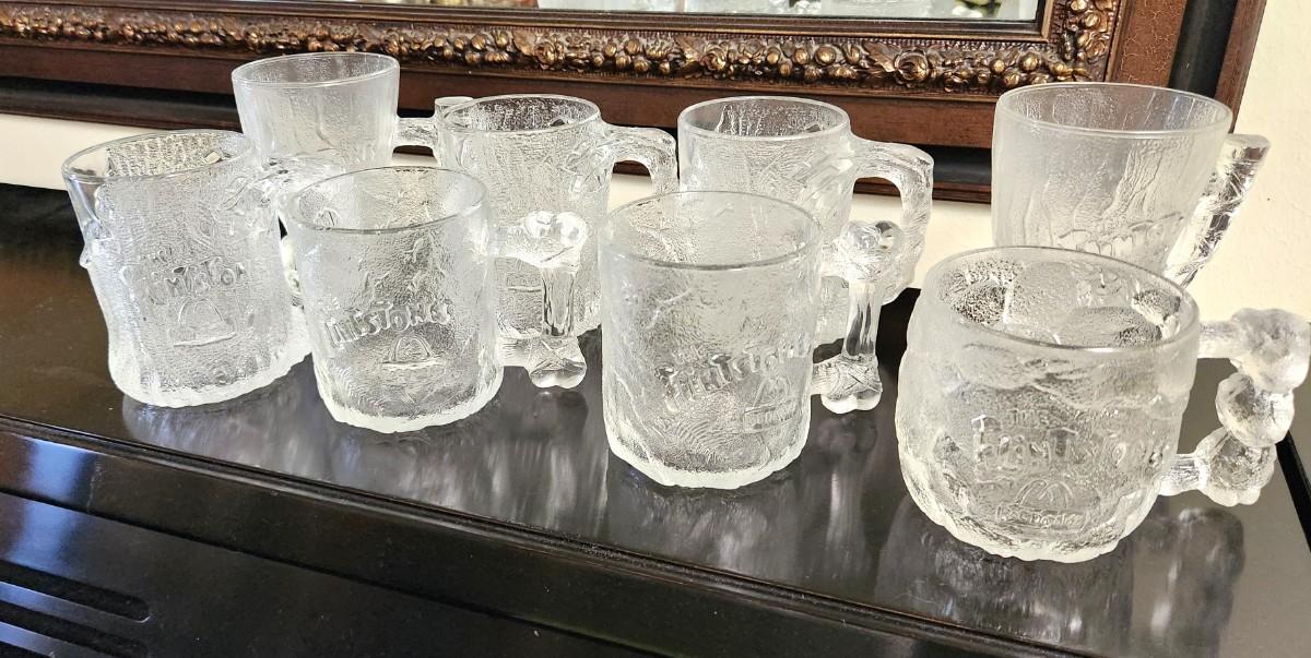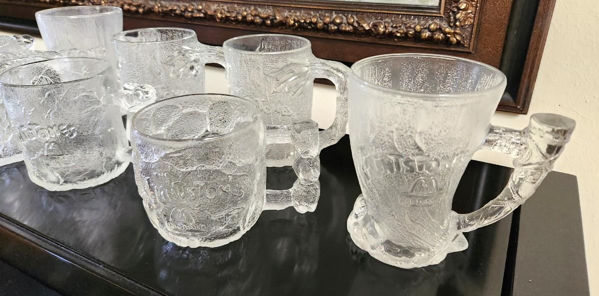 Remember these? 8 vintage "The Flintstones" frosted mugs in 4 different sizes. These were a MacDonald's premium from 1993.