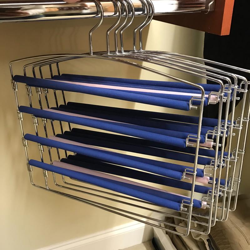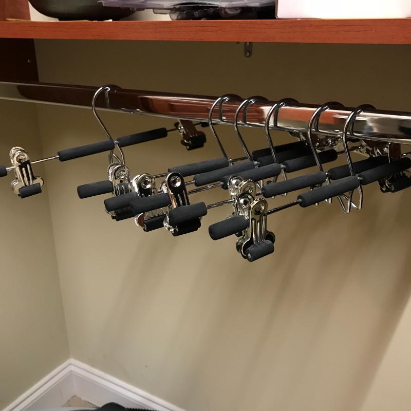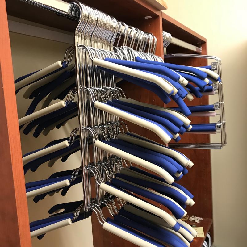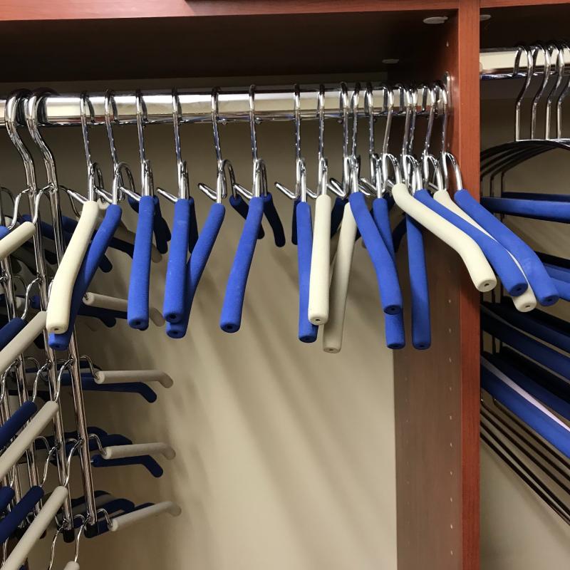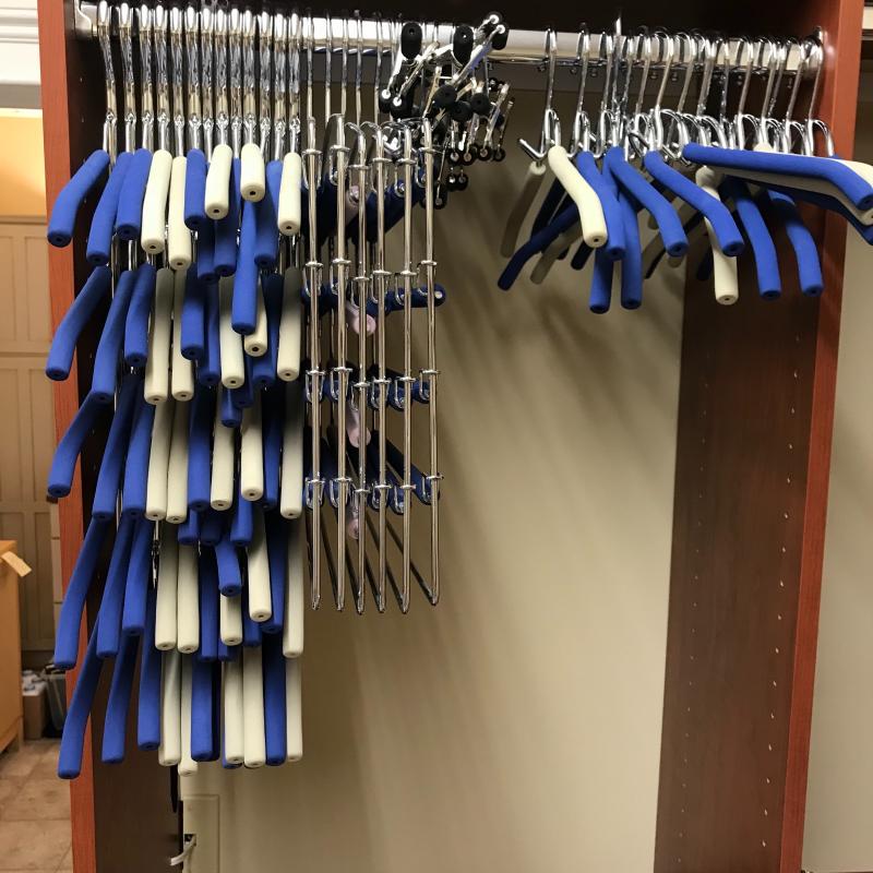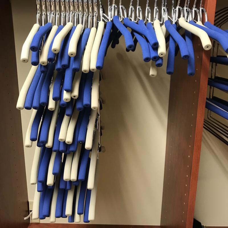 Tired of kinks from regular hangers? Here’s a possible solution! Collection of blue and tan foam hangers with all your hanging solutions in one lot! Hangers are heavy and sturdy. No shipping.