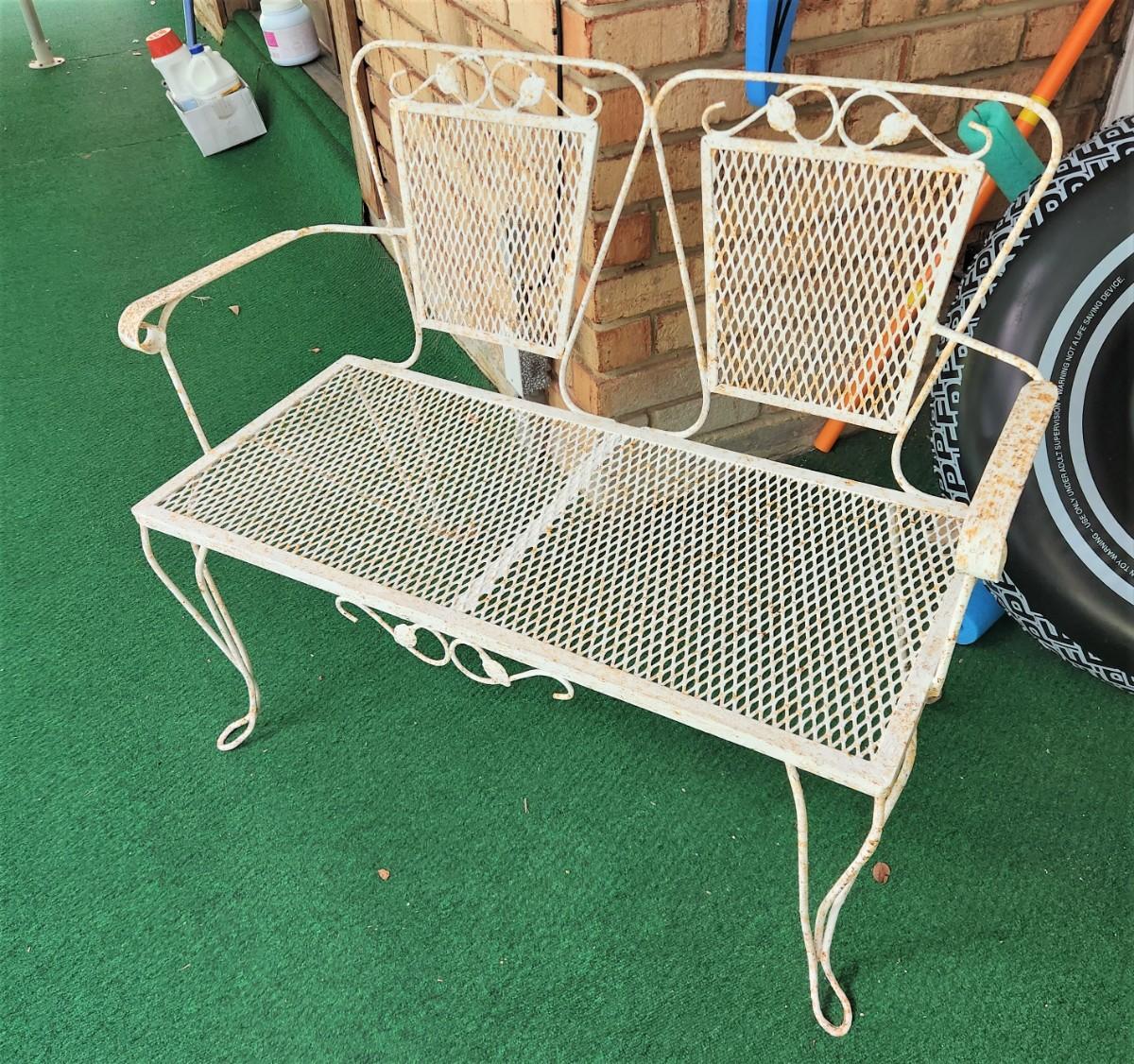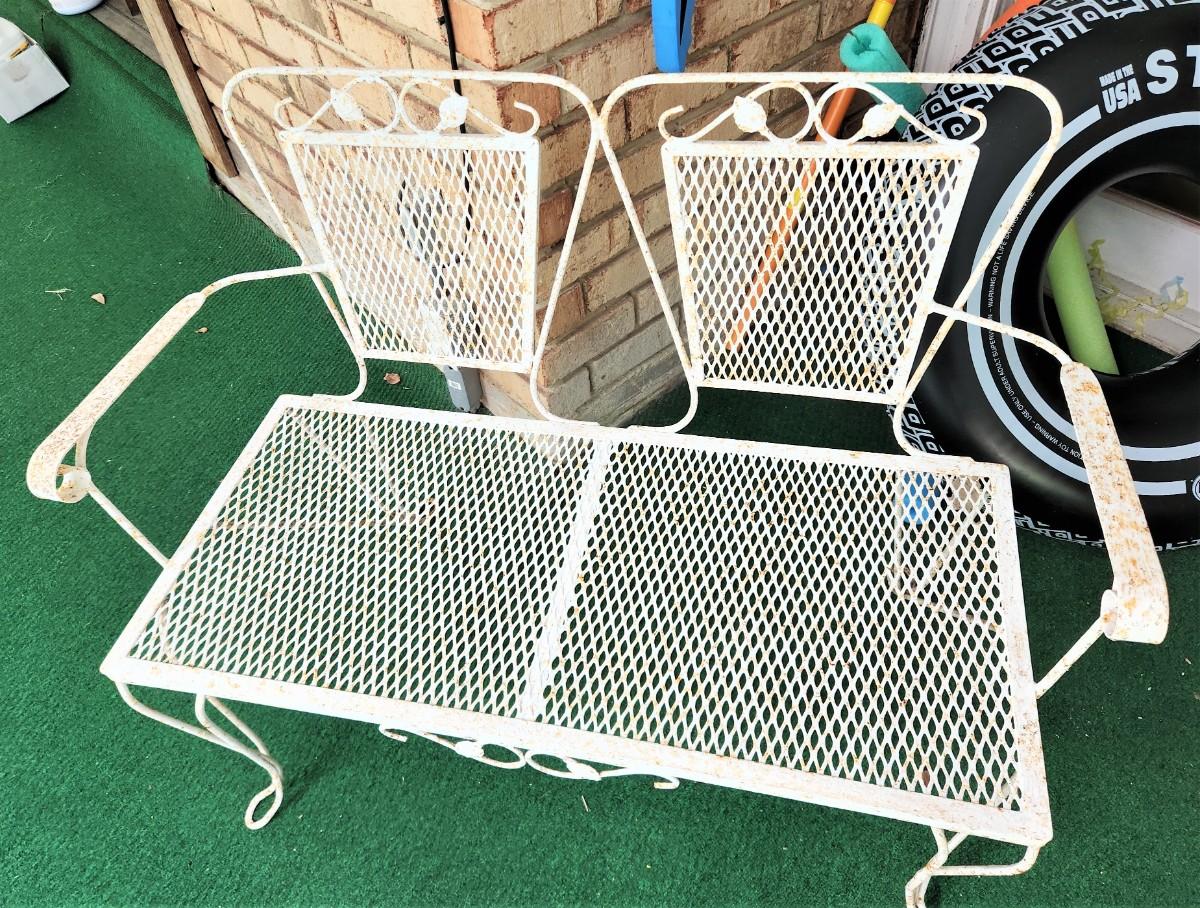 Vintage Mid Century Modern Patio Settee - 16" deep, 36" across, 32" tall. Sturdy - vintage condition.