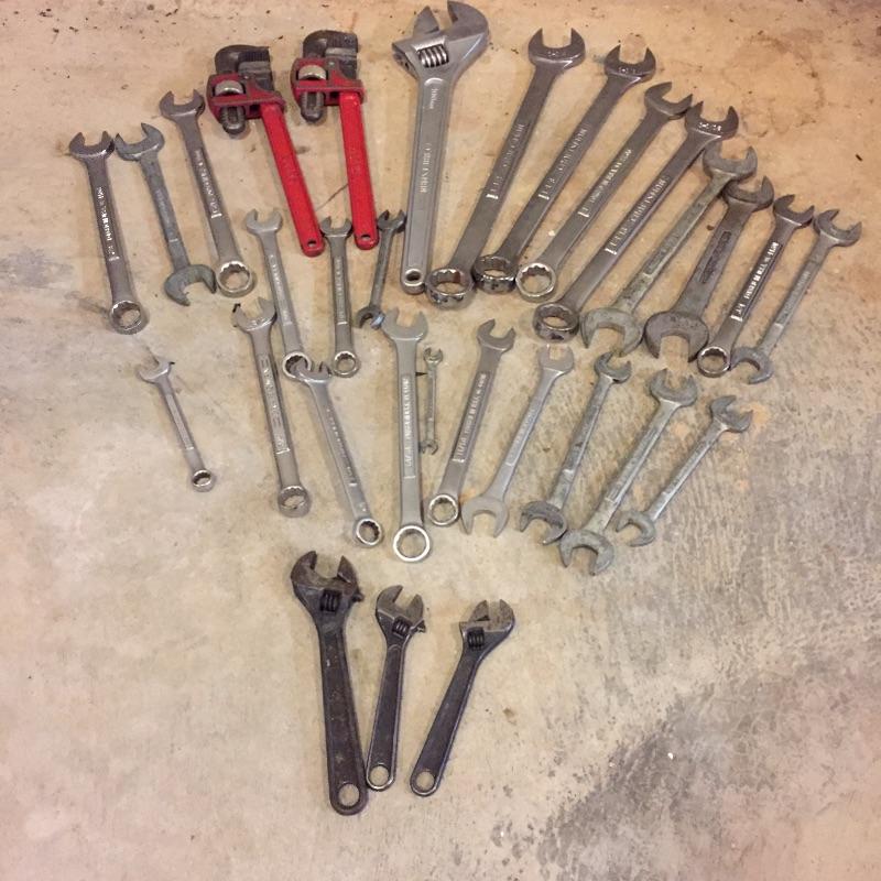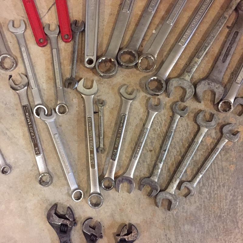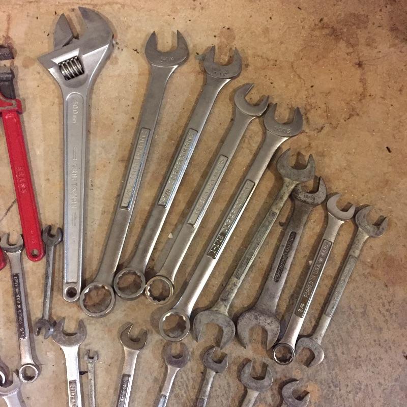 Missing out on this lot would be heart wrenching! Lot includes a nice collection of wrenches in a wide variety of sizes. Most are Craftsman with a few made by Sears.