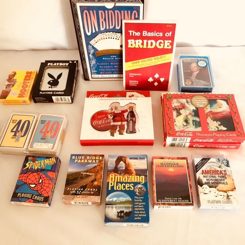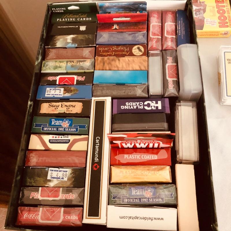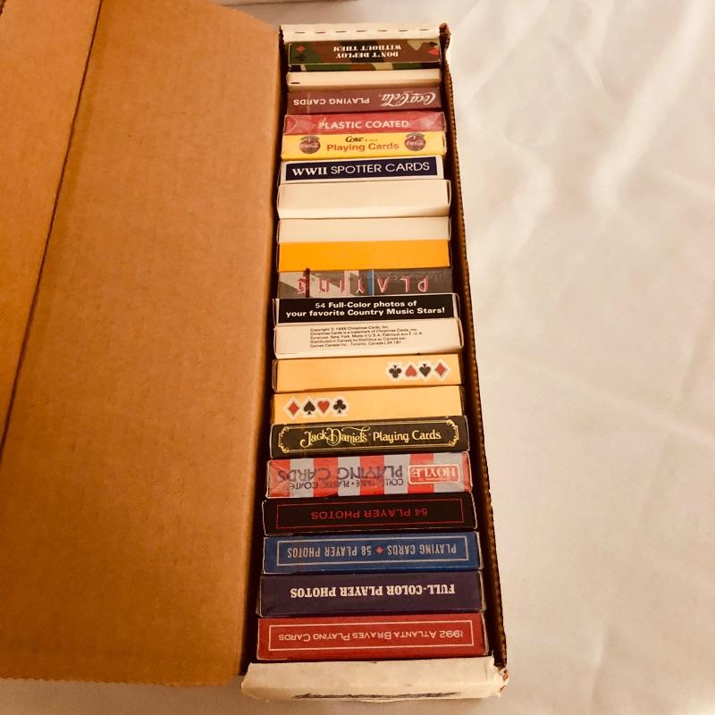 To be honest, we have not counted them, but there are over 50 packs here that include many that are still sealed; it appears these were kept as a collection and therefore not used. There are some really cool packs including from Coca Cola to the Blue Ridge Parkway to 70’s trivia.