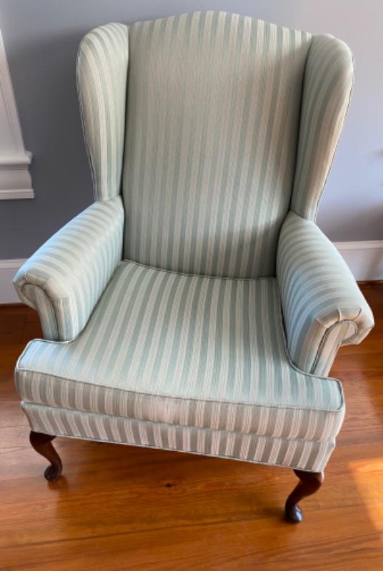 Beautiful upholstered blue Paul Robert Wingback Chair