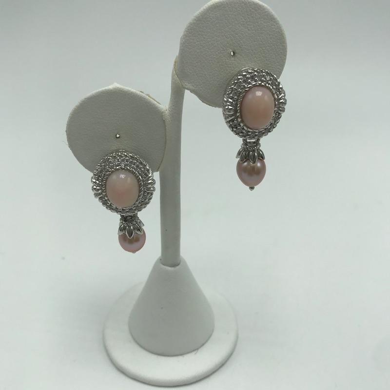 Judith Ripka pieces with pink accents and 925, CZ marks. Lot includes clip earrings, two pendants with locking clasps and two necklaces. One necklace features a purple accented toggle clasp and the other silver chain has a sweet lock and lobster clasp. Starting bid based on melt value.