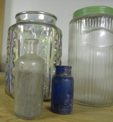 4 - 8" TALL JARS, 1 IS MISSING A LID