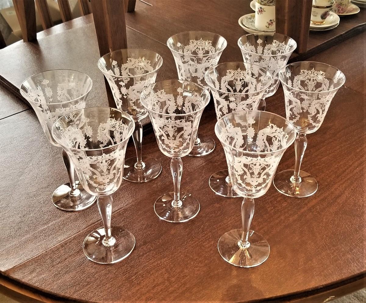 Lot #141  Set of 9 Vintage acid-etched Wine Glasses - 1940's/50s