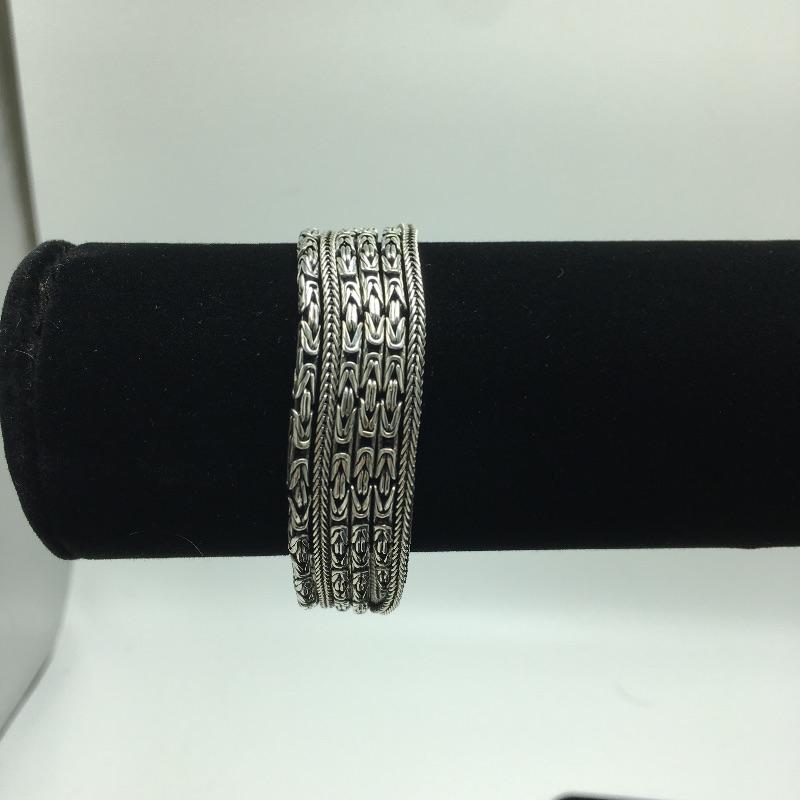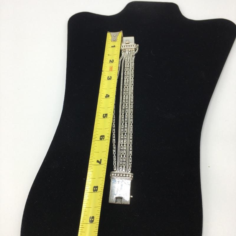 Silpada sterling silver chains are threaded between the antiqued edges of this classic bracelet with a box clasp that fits a wrist up to 7”.