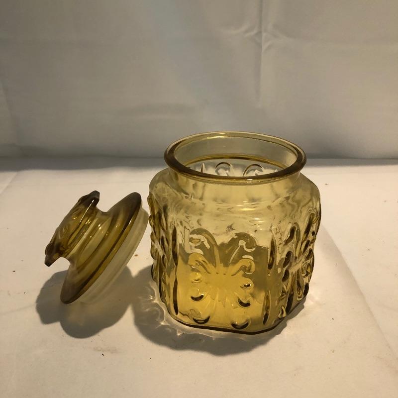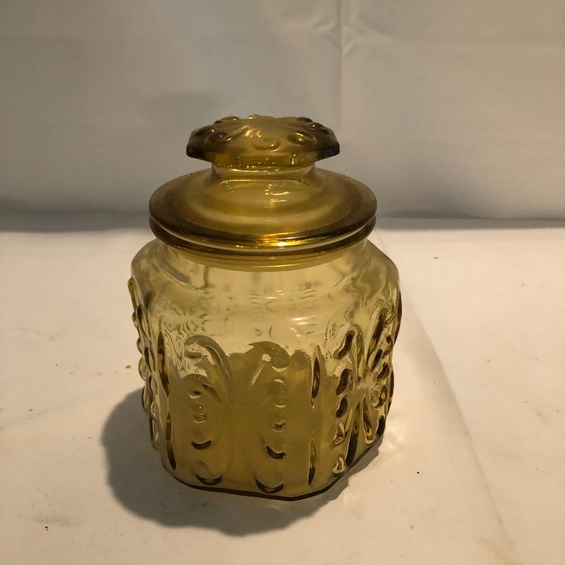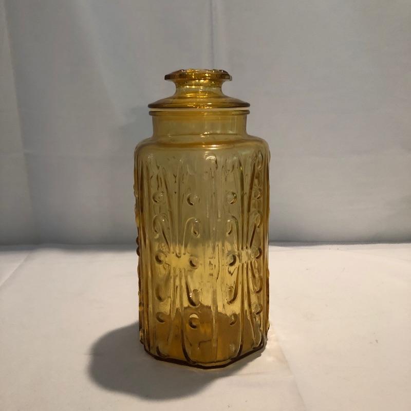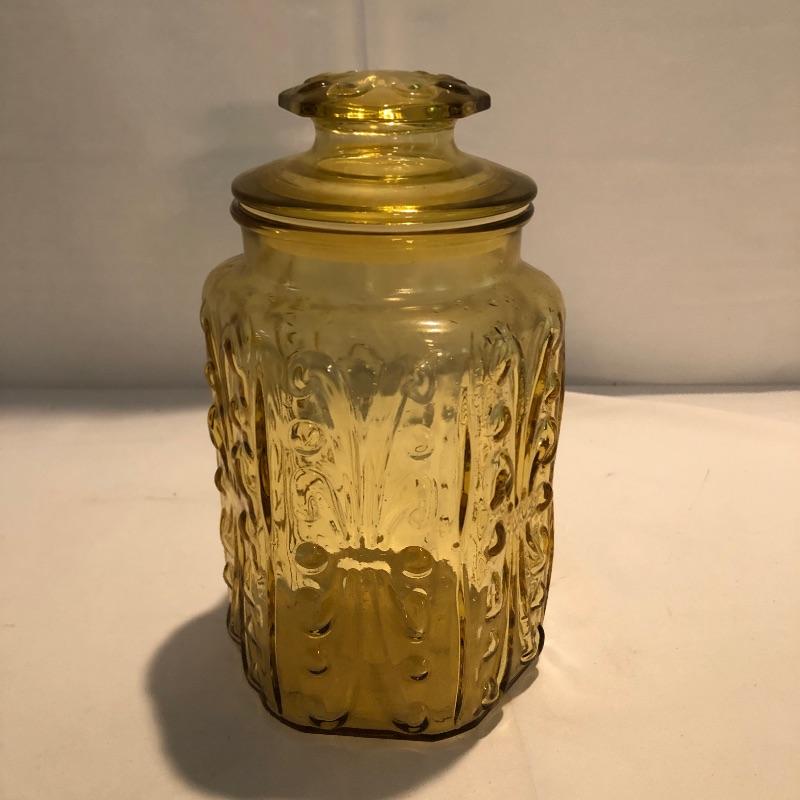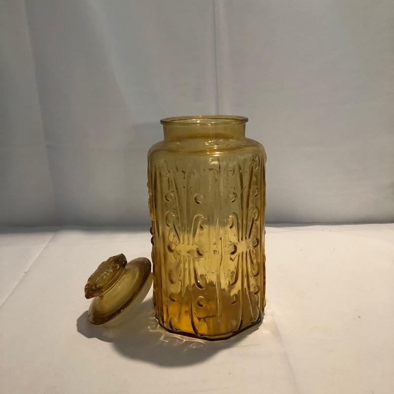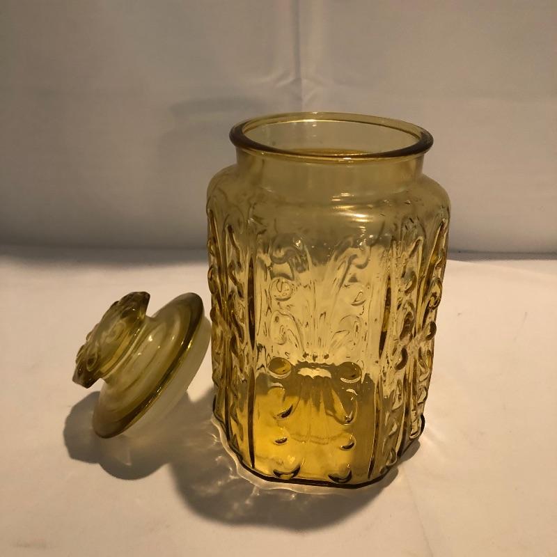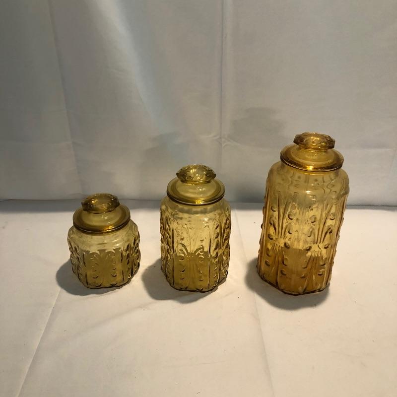 These yellow glass canisters are beautiful and multifunctional! You can use one as a cookie jar, one as a place to hold large utensils, a flower vase, whatever you want! These have many uses and will look great wherever you put them. The largest canister measures 6"x12" and all canisters have a plastic lid insert Local pickup only.