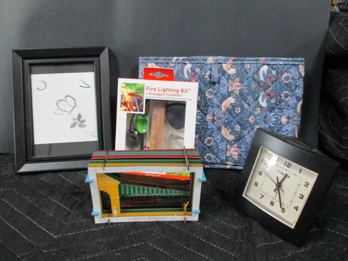 Lot 141 - Collection of Home Decor includes Timex Clock, 3 D Café, Fire Lighting Kit, and More