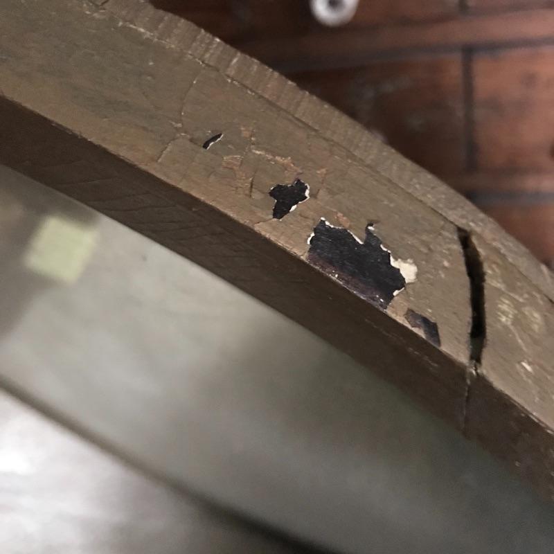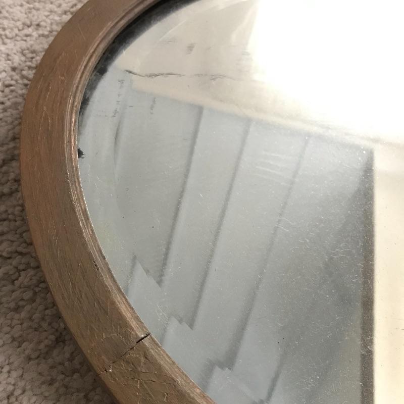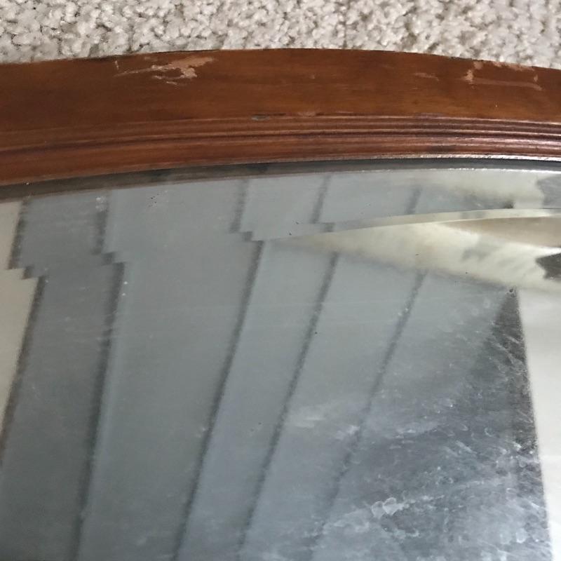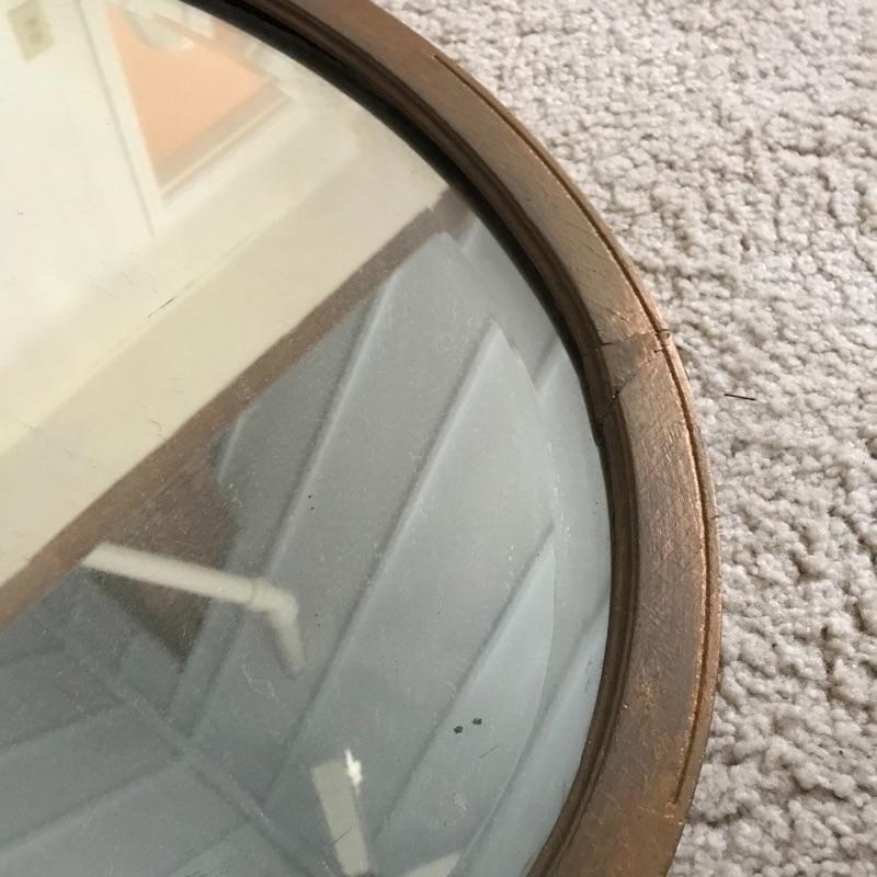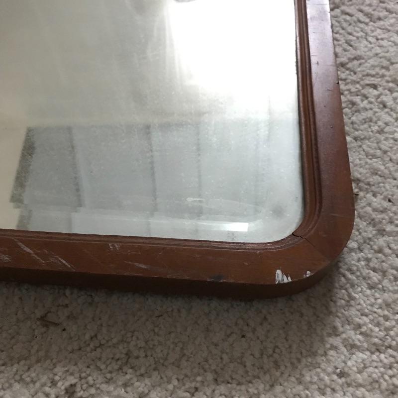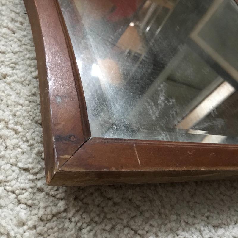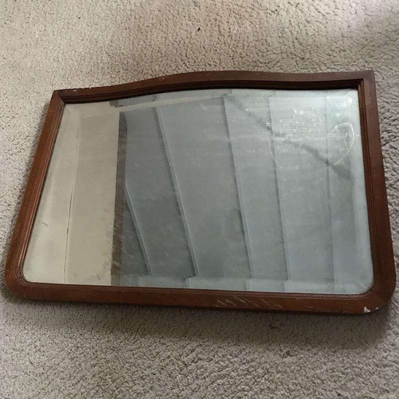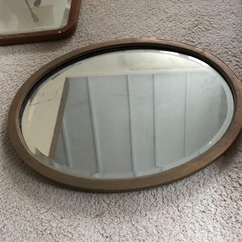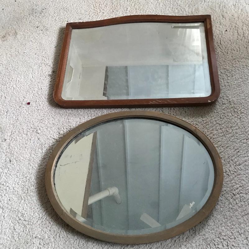 Two lovely heavy vintage mirrors. Both frames are wood, one appears to have been painted gold a long time ago. The mirrors show some aging, but are intact and charming. See photos. No shipping.