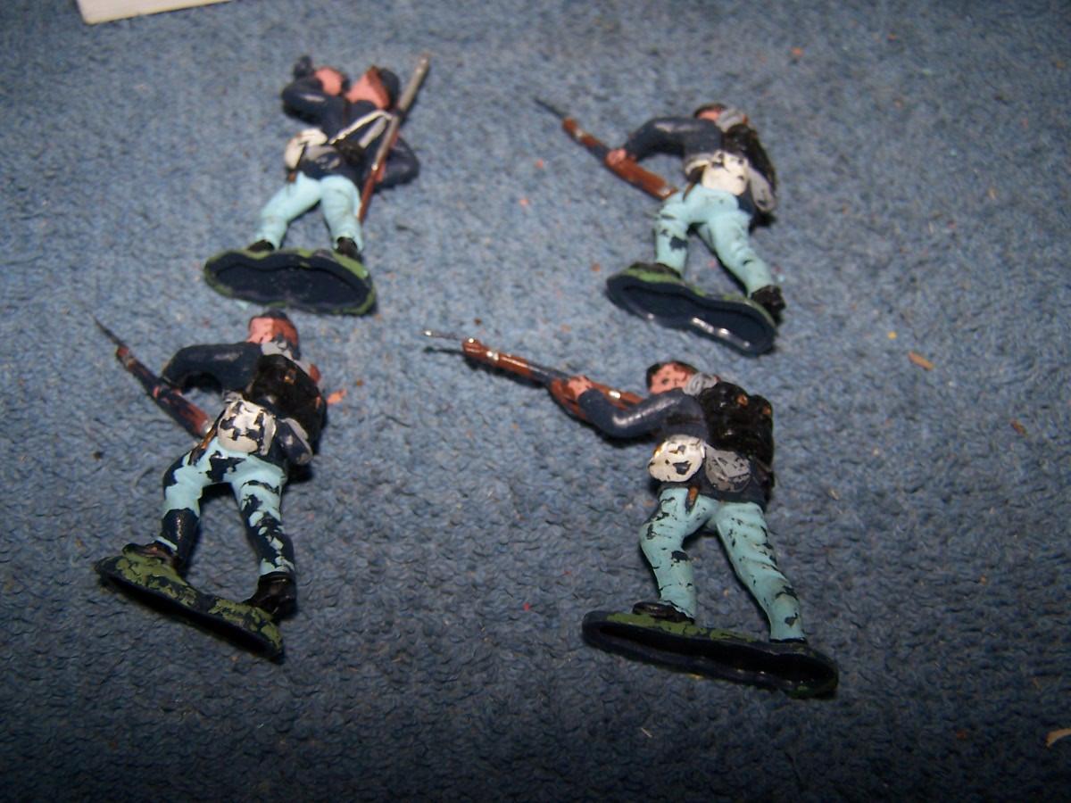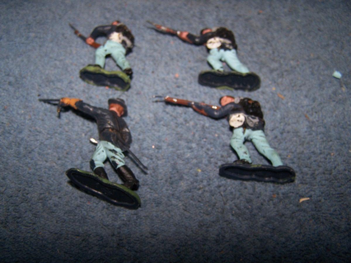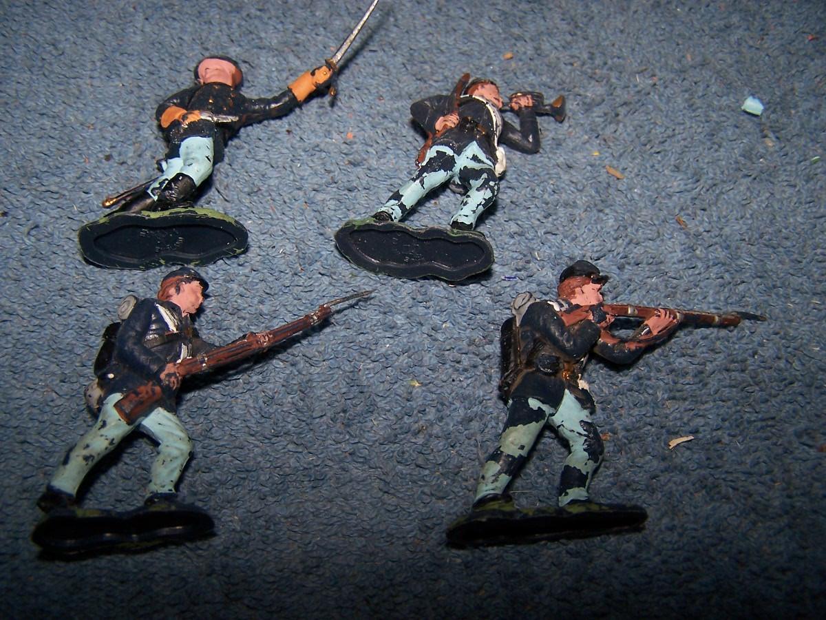 THESE ARE UNION PAINTED SOLDIERS--CRESCENT TOY CO.. APPROX 2 3/8'' TALL.. PLAYED WITH...