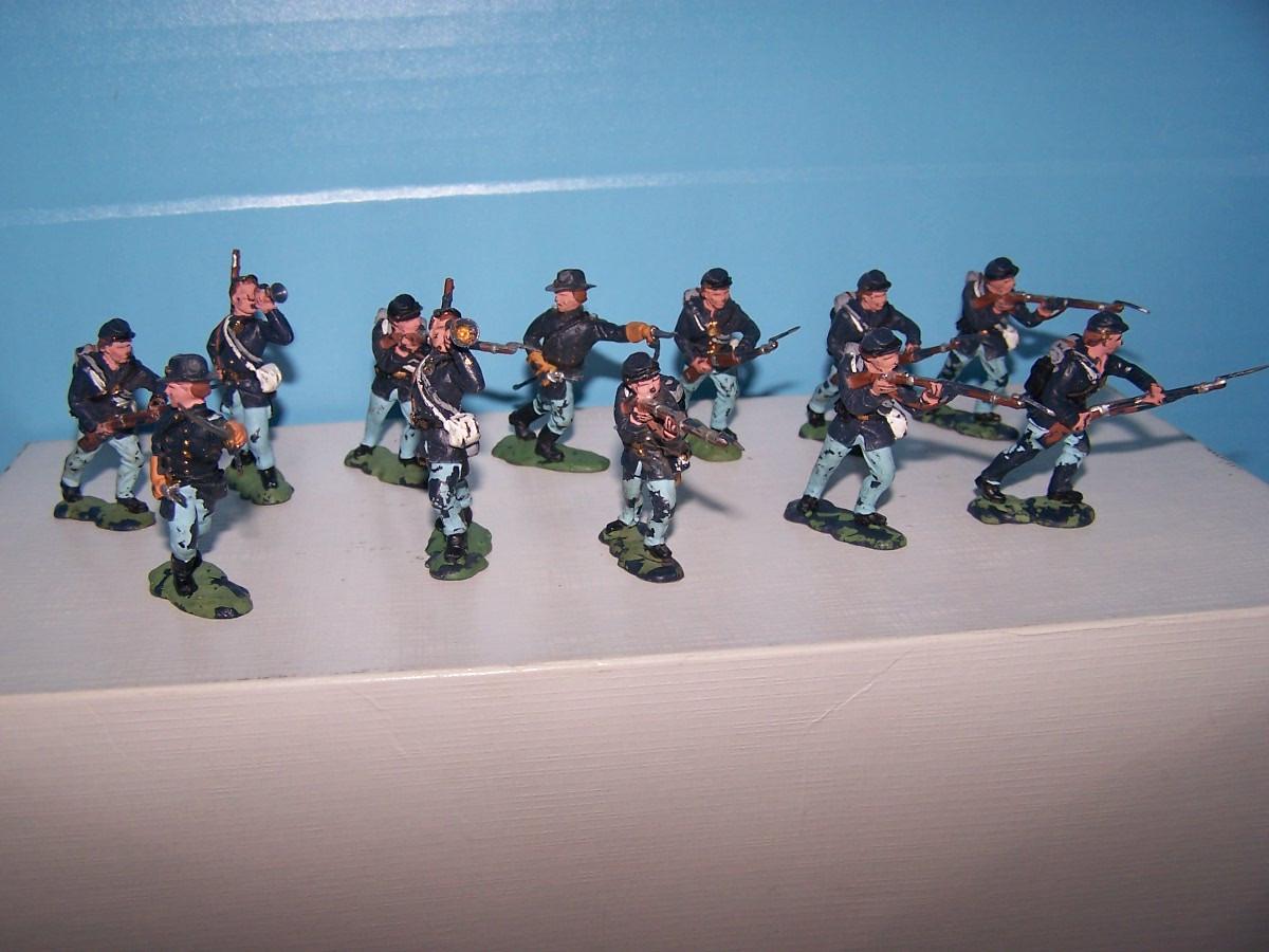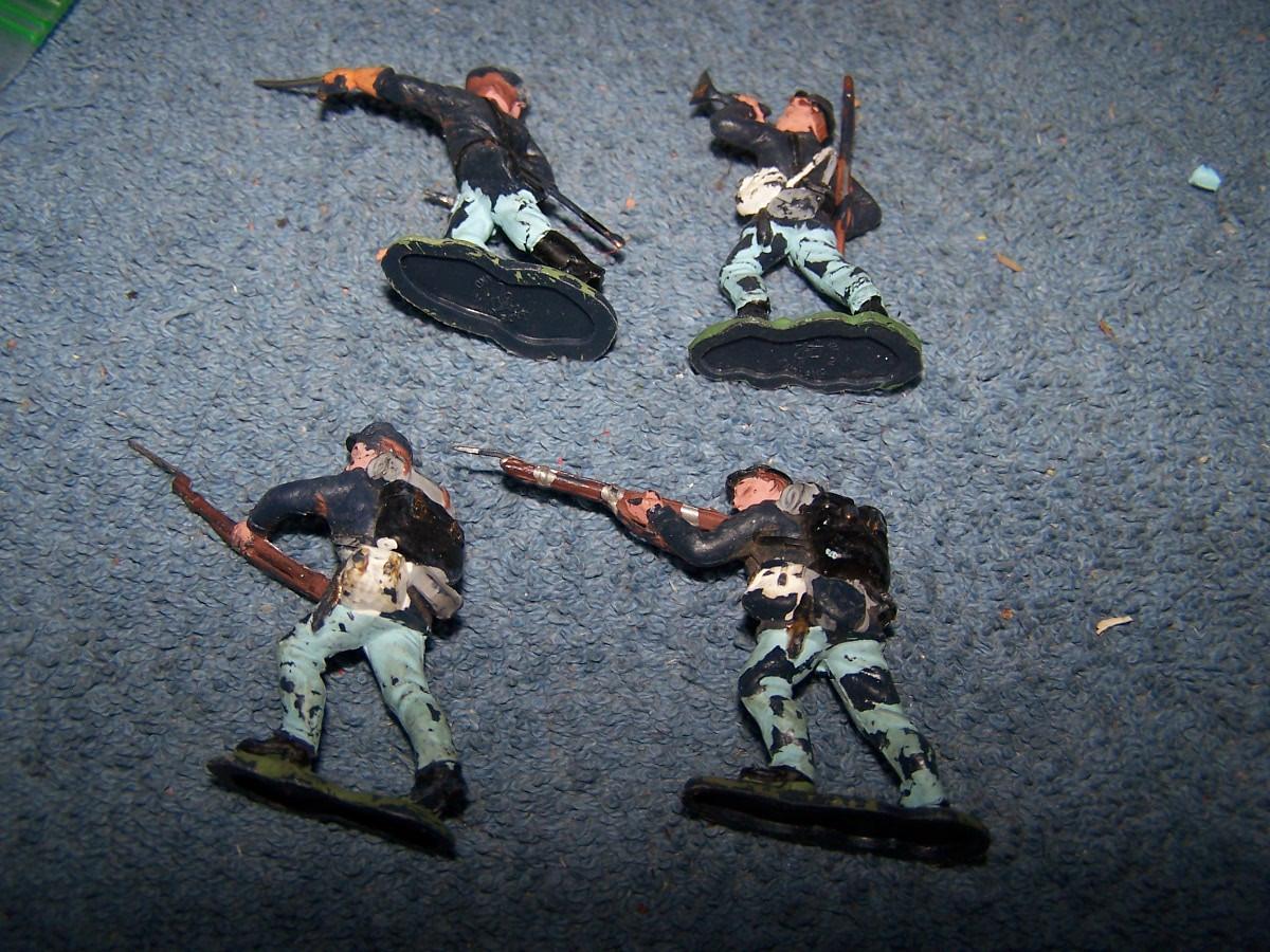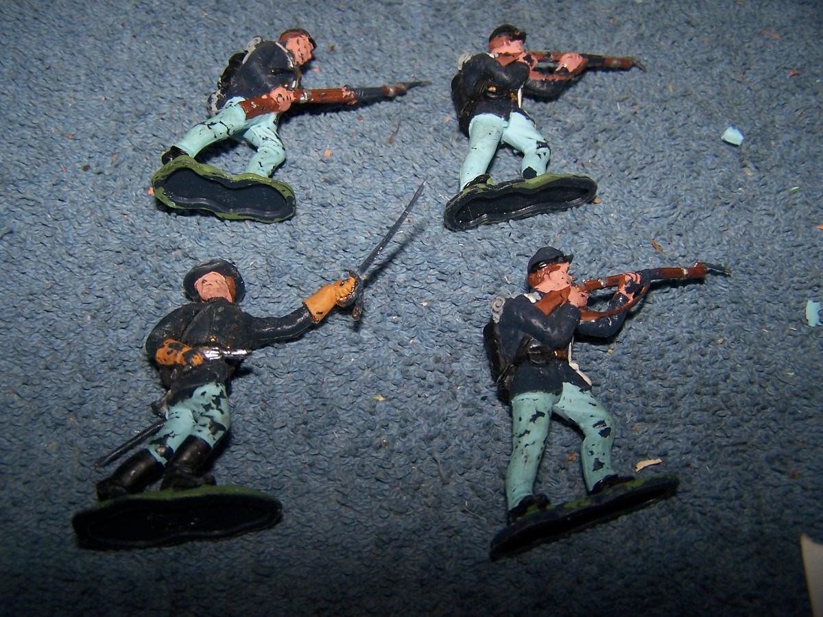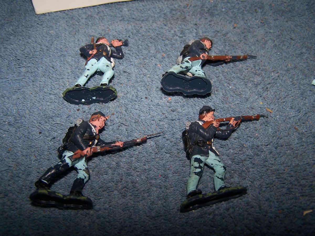 THESE ARE UNION PAINTED SOLDIERS--CRESCENT TOY CO.. APPROX 2 3/8'' TALL.. PLAYED WITH...