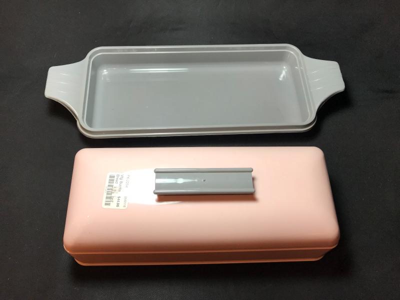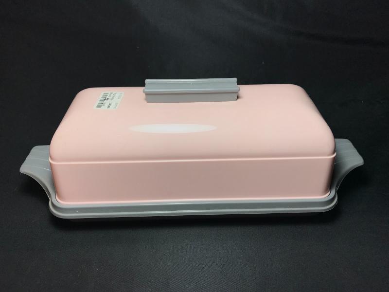 Very nice vintage bread keeper in pink and greay plastic by Burrite. Great condition. 16"x 6"x 6 1/2" H