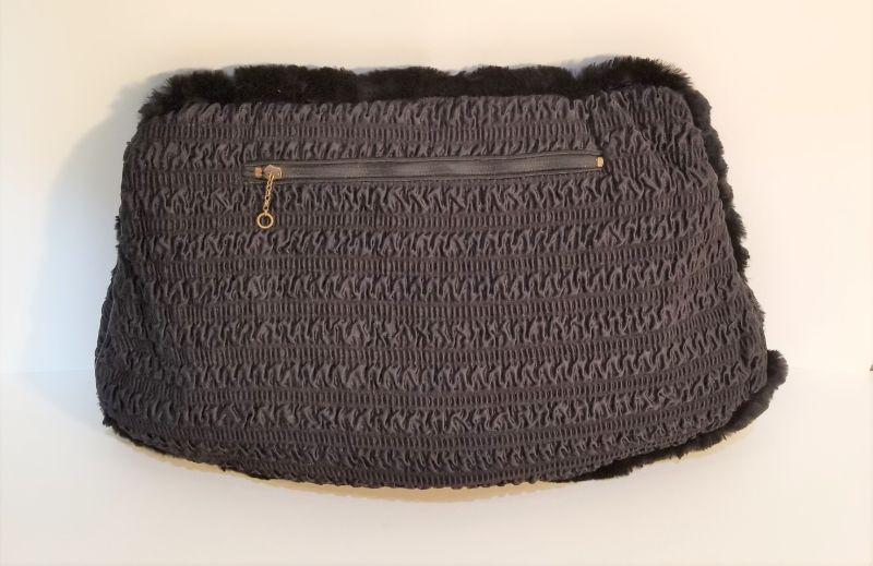 Great vintage sealskin muff - lining good, has zippered compartment in reverse for storage - clean - good condition. Ruched back. Measures 17" across, 12" tall.