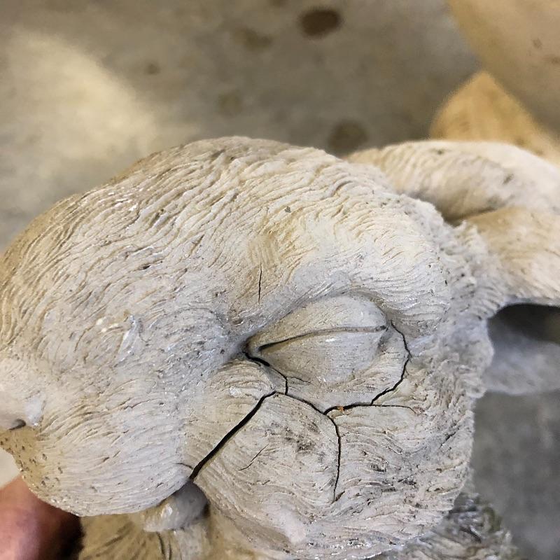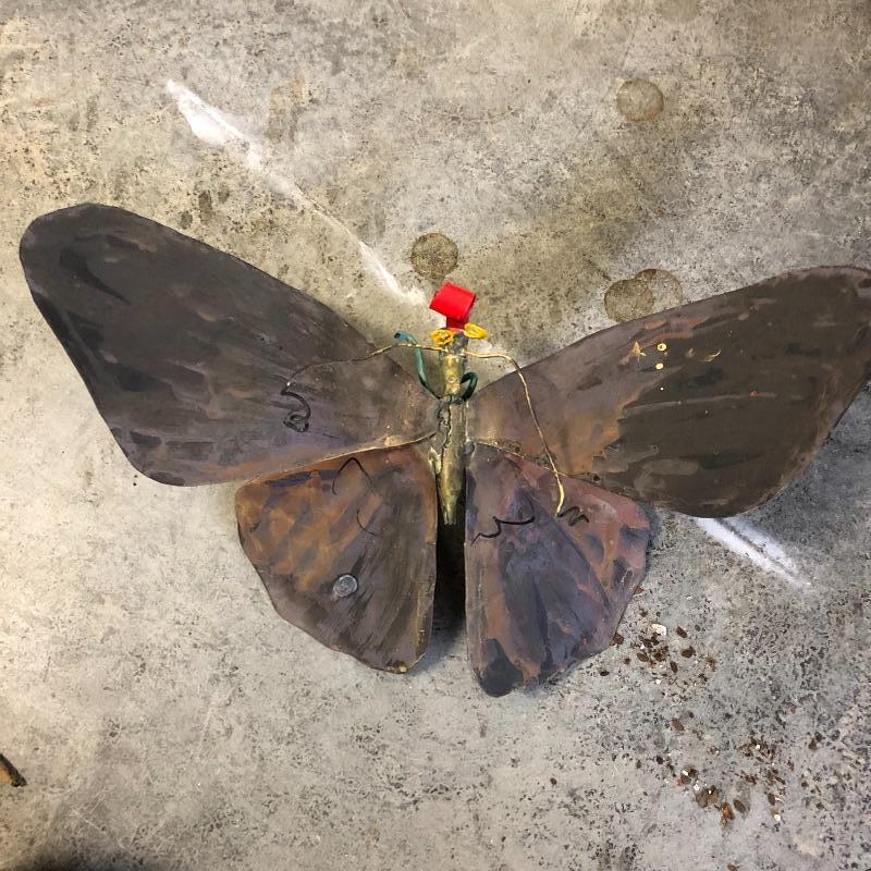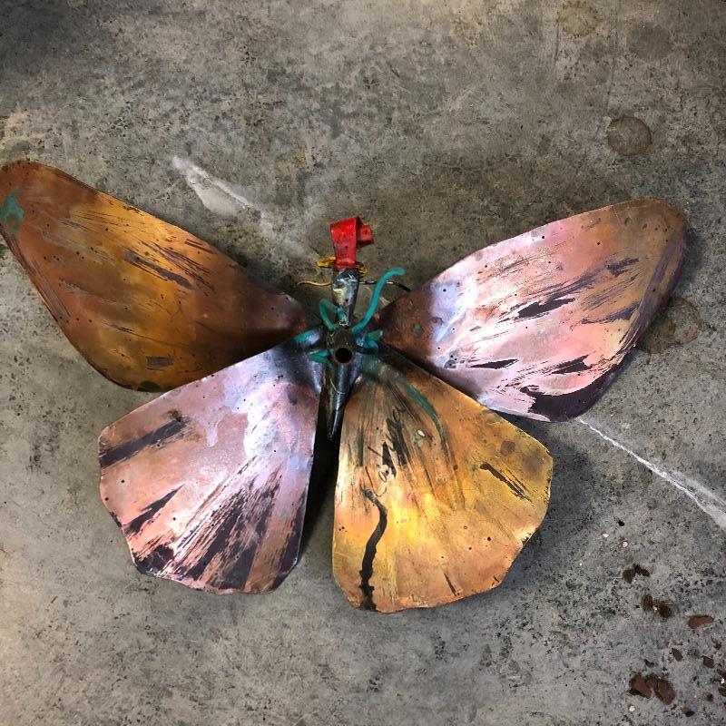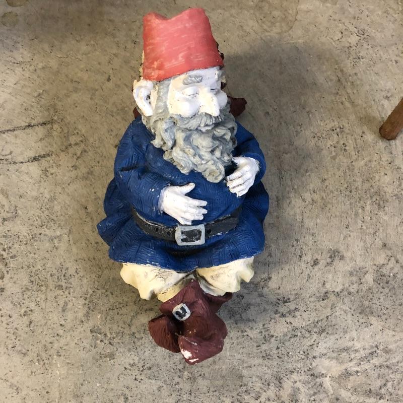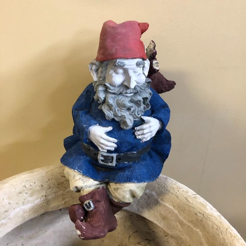 Add style to your garden with this array of outdoor art. Lot includes deer, scarecrow, gnome and bunny made from resin, copper butterfly and a resin plant pot. Plant pot measures 17.5”D x 19.5” tall.