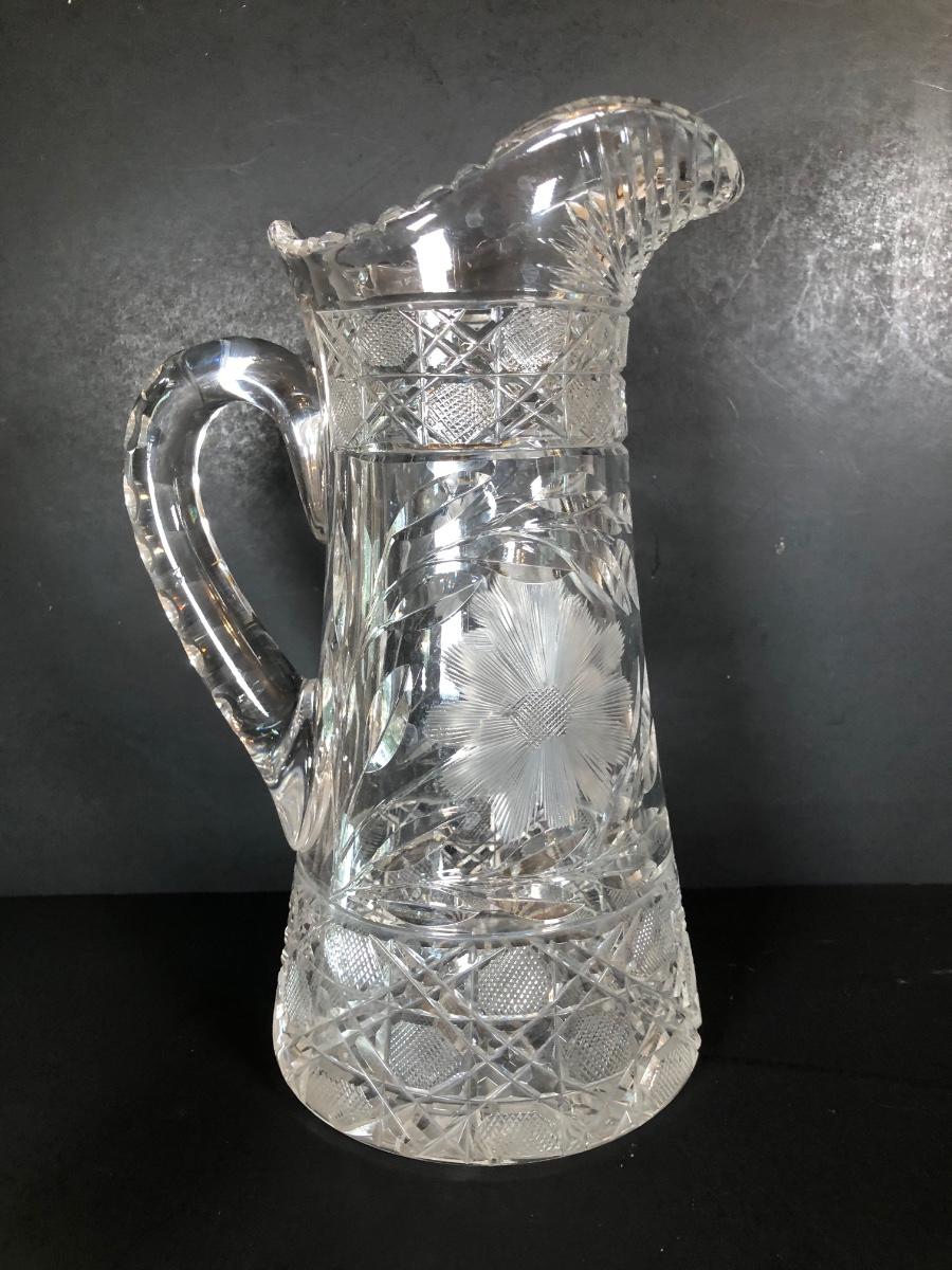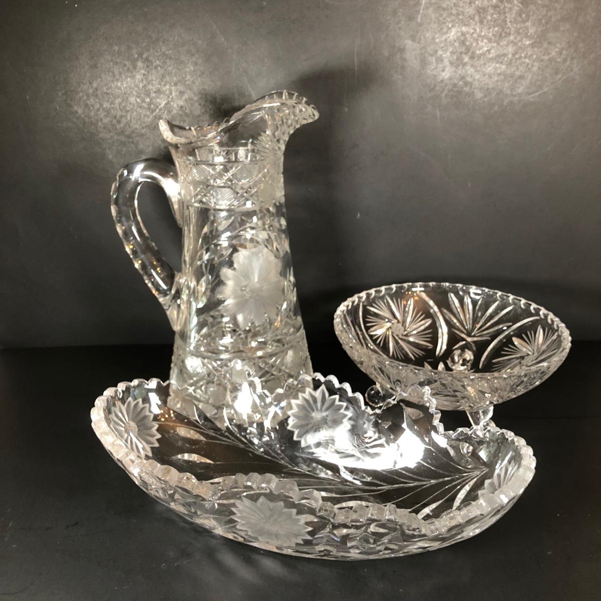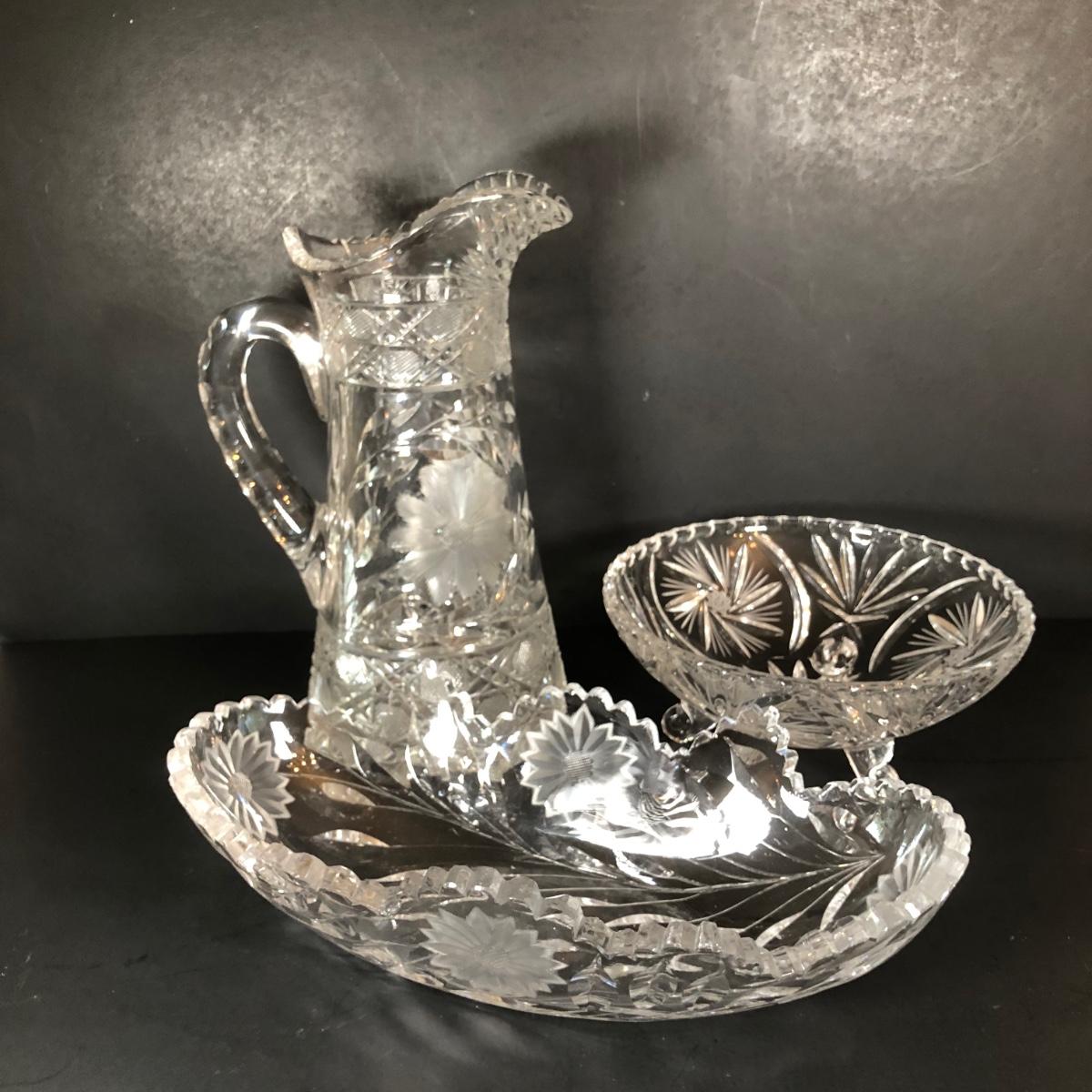 LOT 141L: Cut Crystal - Pitcher, Footed Dish & Oval Dish