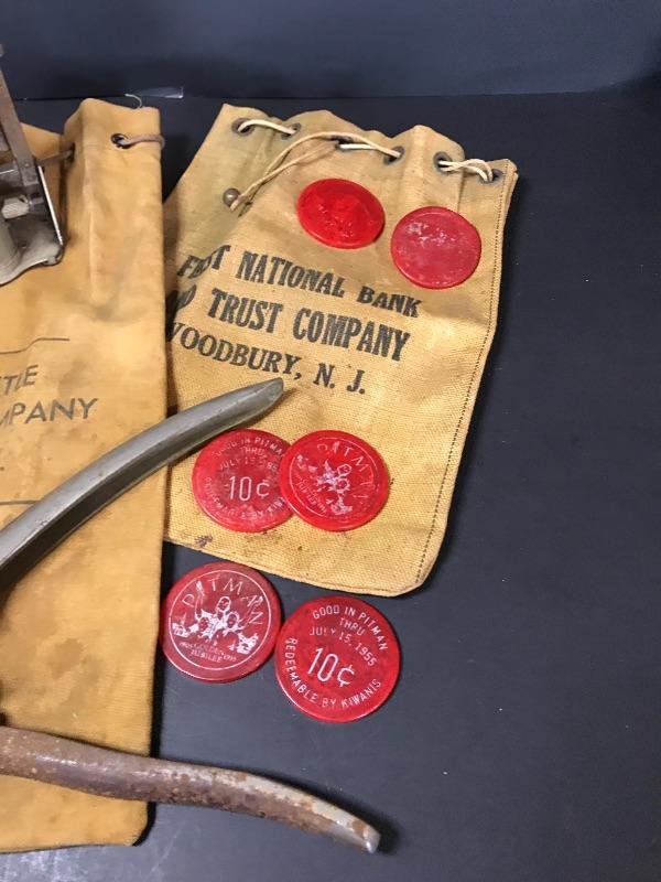 Vintage Money Bags and more. Local bridge and parkway tokens. Vintage Pitman Kiwanis chips. Please see all pictures for content of the lot, condition of the lot, and measurements if taken. Pictures are the best representation of the items listed and items are untested unless indicated in description. Thank you for looking and have fun bidding!