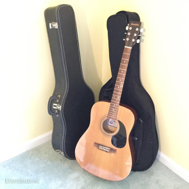 Yamaha FG-75 and Sunlite guitars with carrying cases. One hard and one soft case. Blue paint spot on back of Yamaha. See photos for details. No Shipping. Only local pick up in Flat Rock, NC.