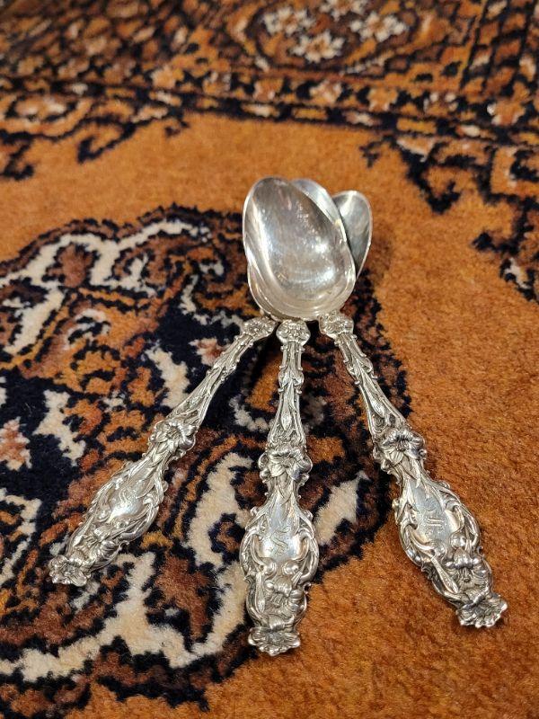 Lot #142: (3) Antique/Vintage Fancy Sterling Silver Spoons - "S" Monogram